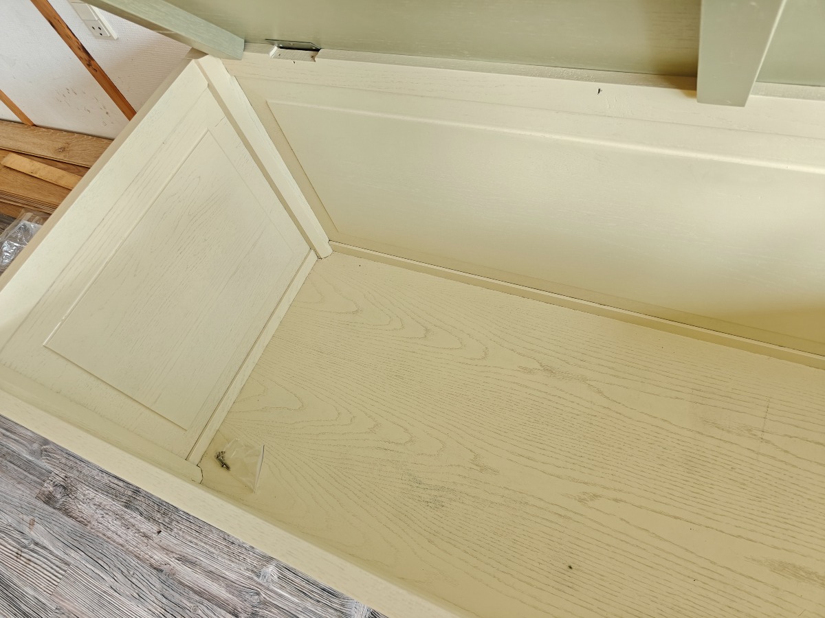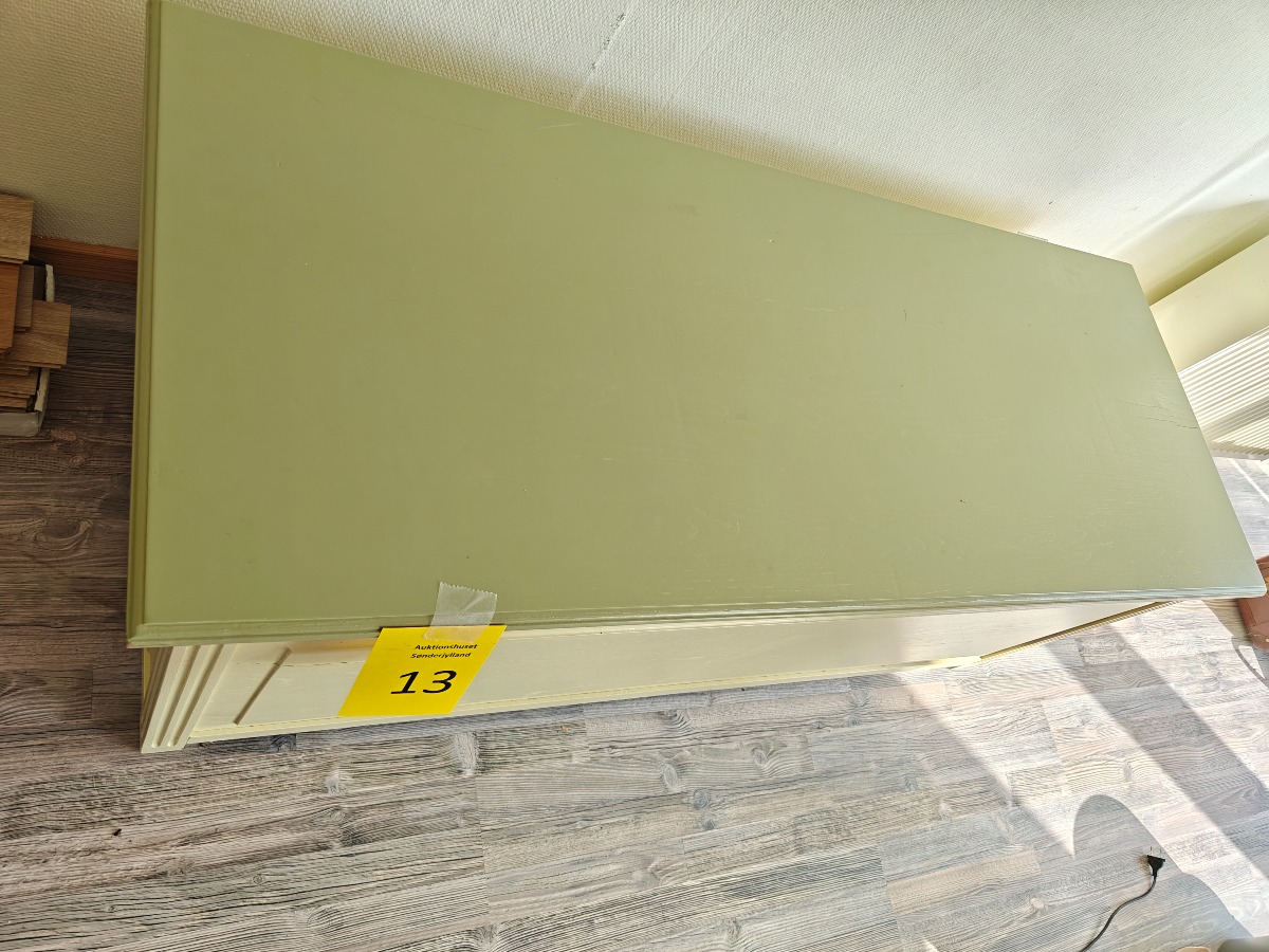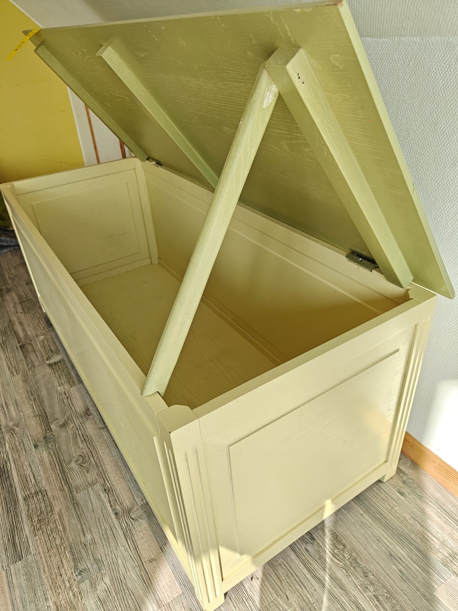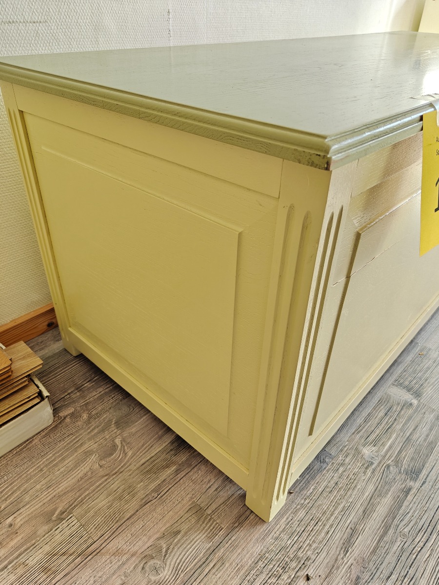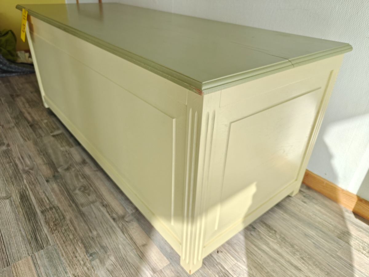 Kiste i pastelfarver. Måler 156 b x 62 d x 62 høj. Låget er skruet løs, men alt medfølger. I pæn stand og med brugsspor. Brugt