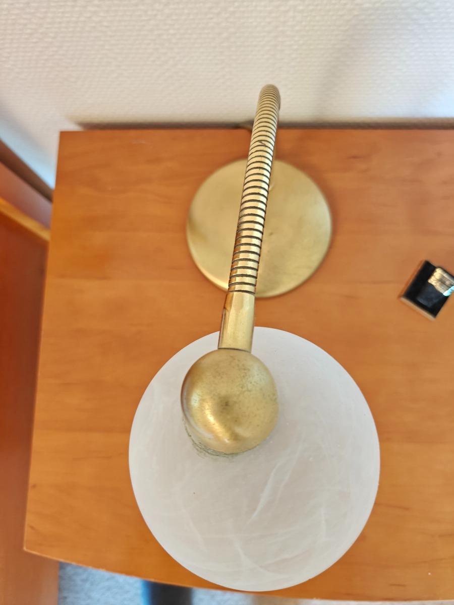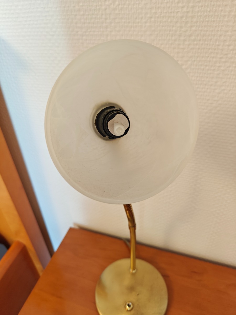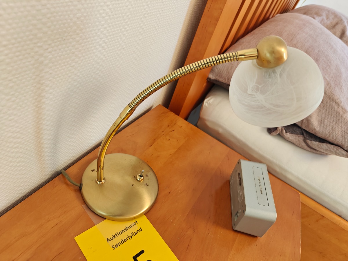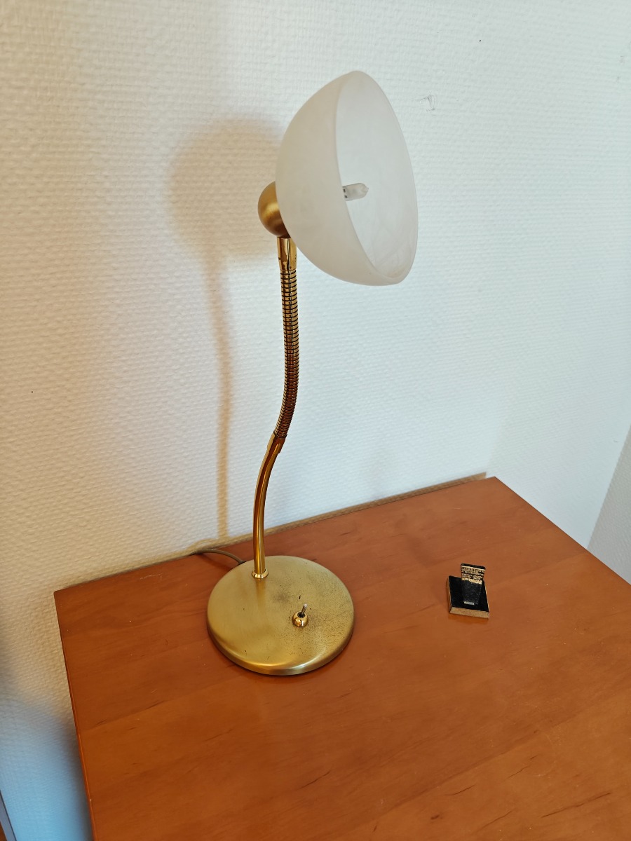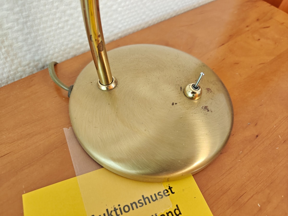 2 stk Messing lamper på rund fod med bøjelig stativ. Måler 35 høj x 13 Ø i foden. Originale og tunge. I god kvalitet. I pæn stand og med brugsspor. Brugt