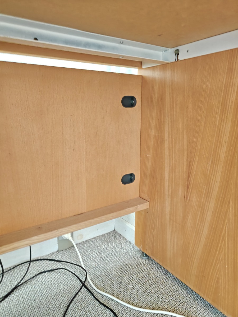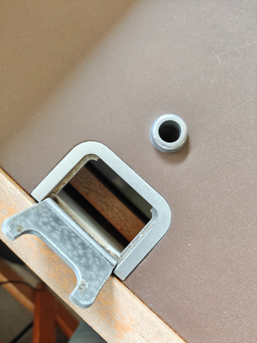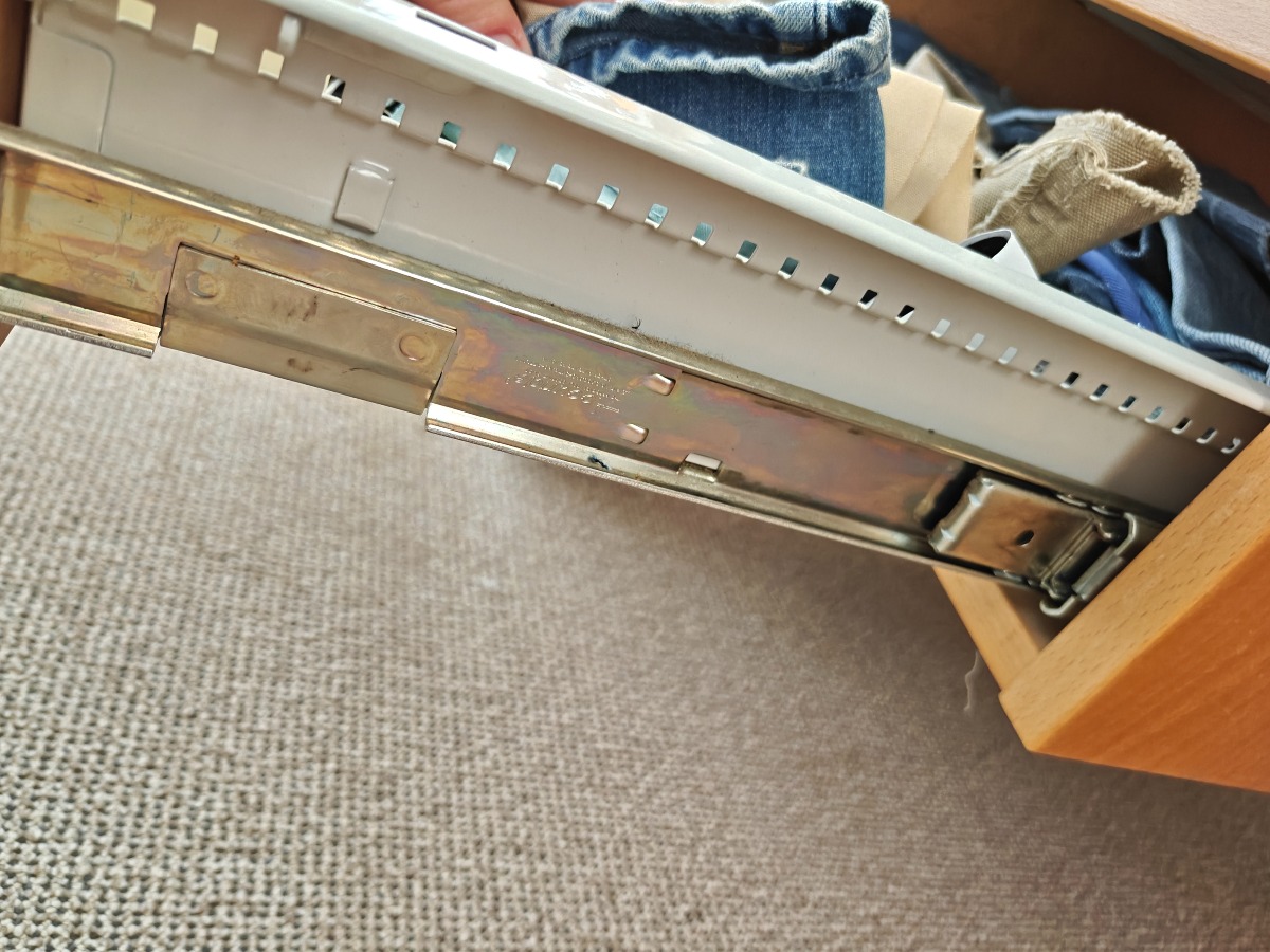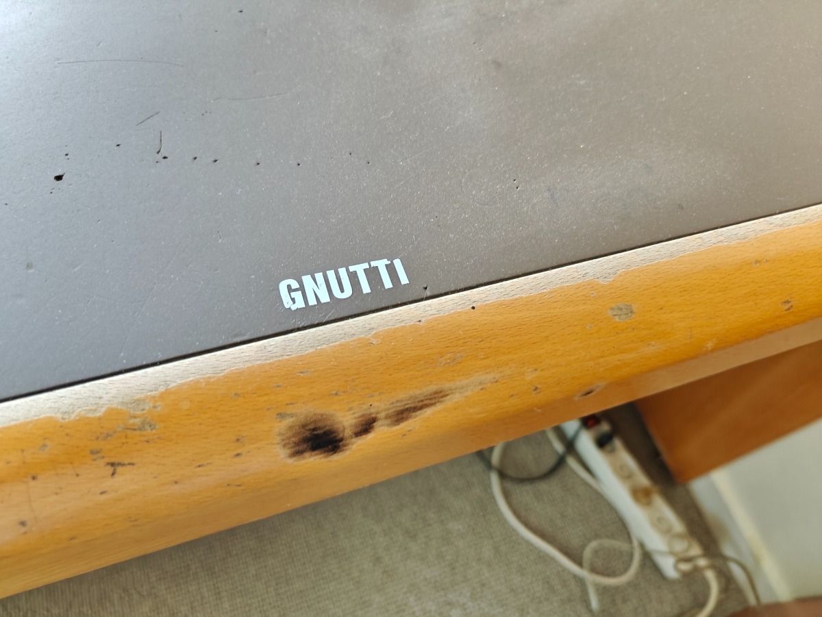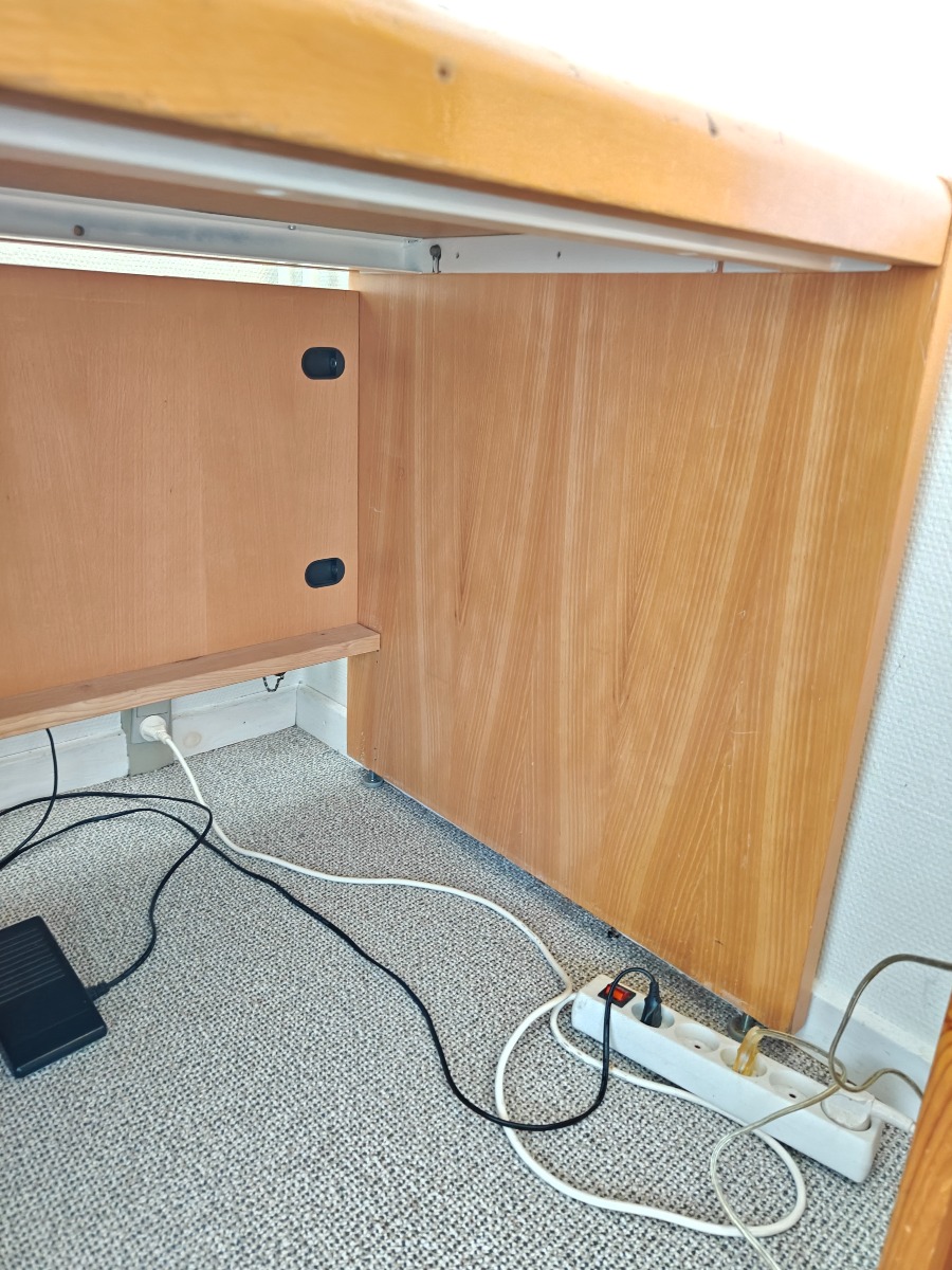Skrivebord med laminat bordplade. Måler 14 x 70 x 74 høj. Med 3 skuffer og vejer meget. I ok stand. Brugt