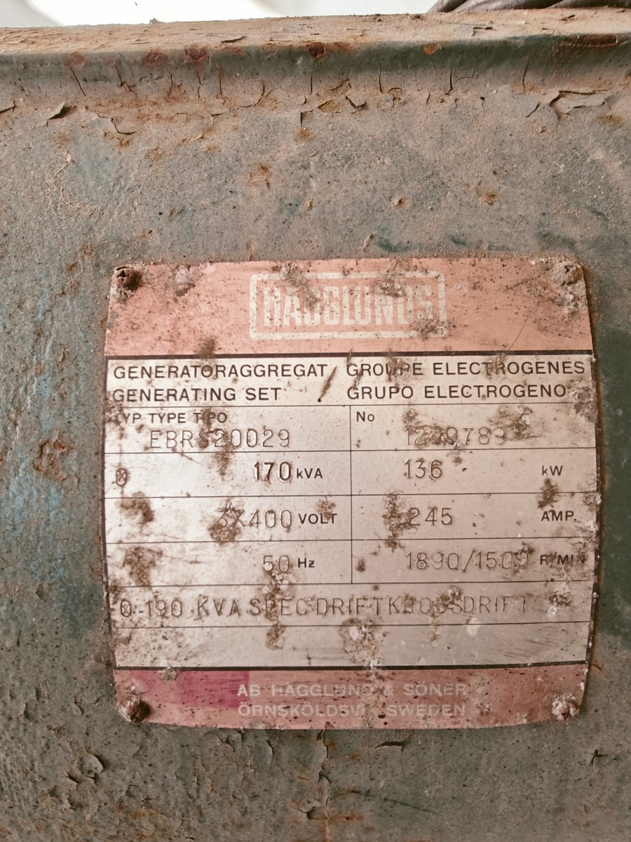 135 kw Hagglunds generator med Volvo diesel motor måler L 340 x B105 x H 165 cm brugt virker upåklageligt.