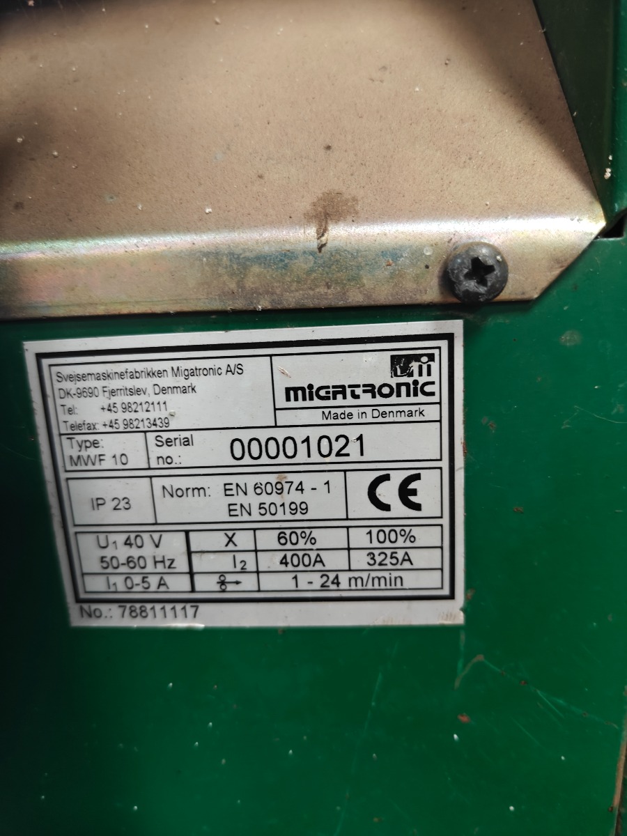 Migatronic svejser mig 505 uden flaske svejseslangen er beskadiget ved tilkobliningen, virkede ved henstilling, Sælges for virksomhed