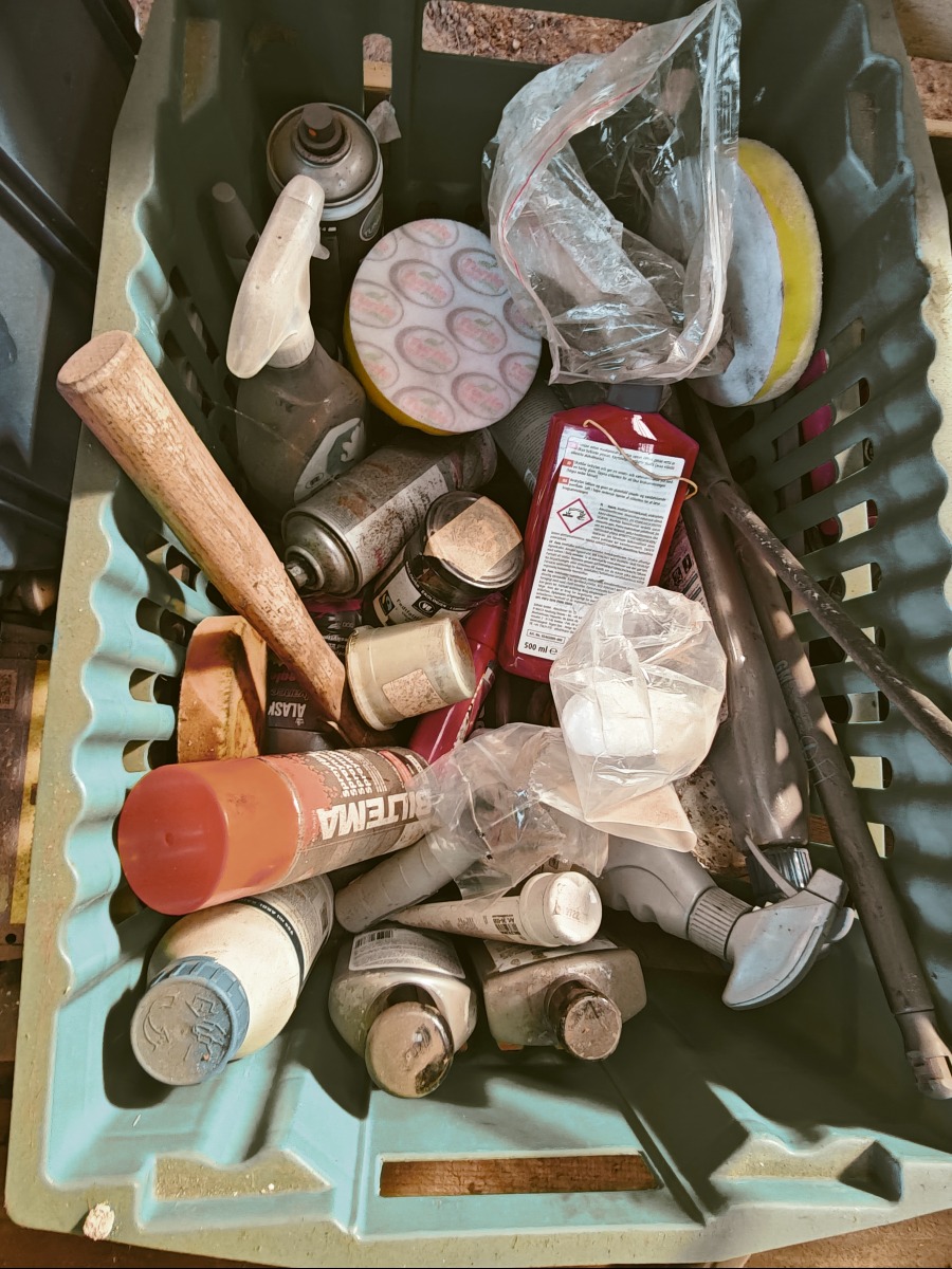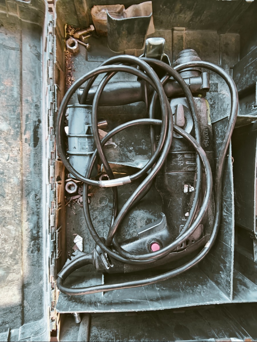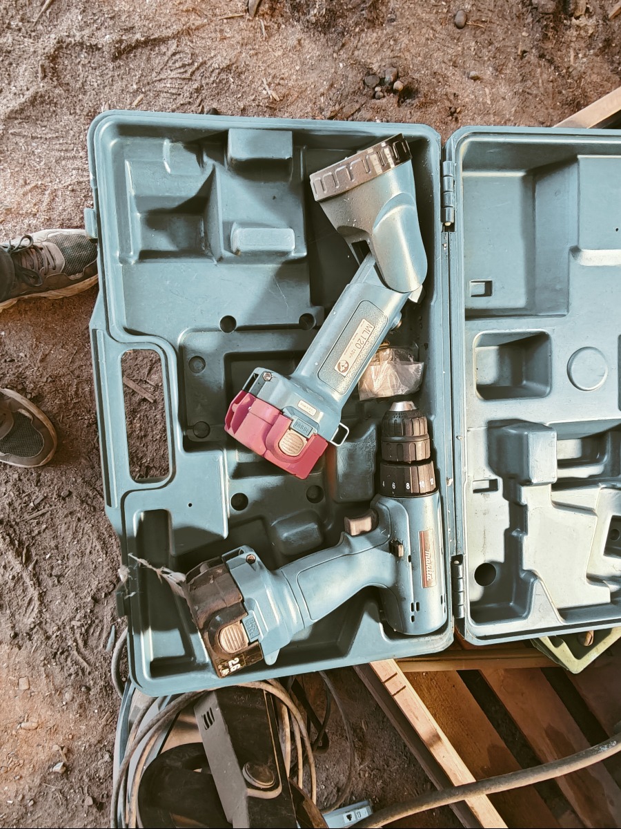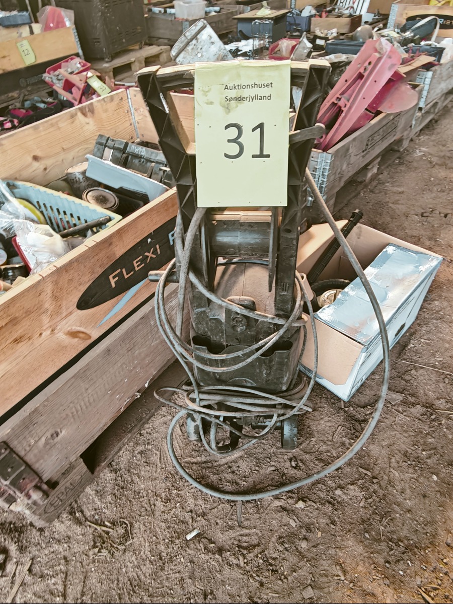 Nilfisk højtryksrens, terrasserenser, makita boremaskine model 6227D, håndlampe, metatabo boremaskine og kasse med autolak til plet malling. Sælges for virksomhed.