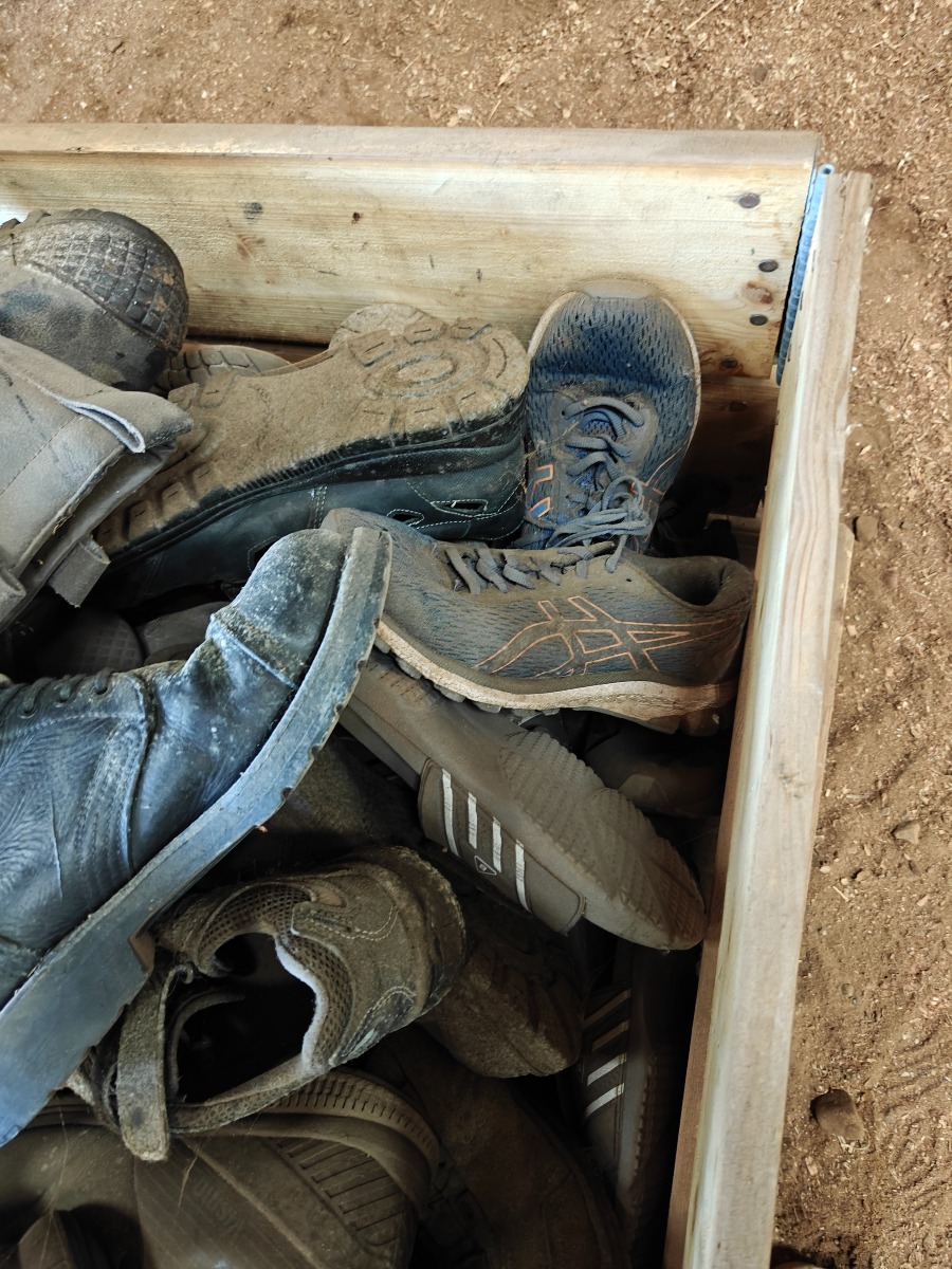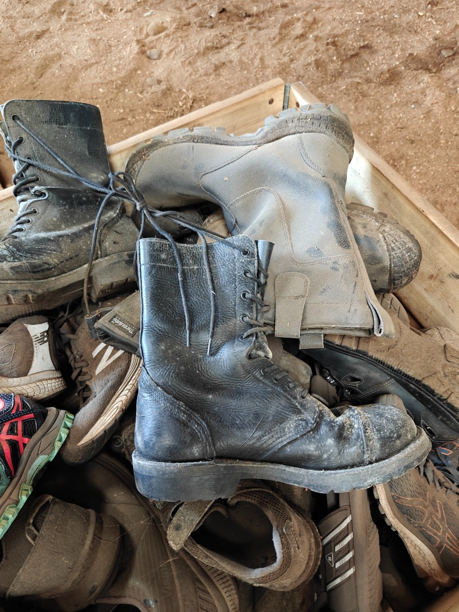 Parti brugte & nye sko & støvler, træger til rengøring, tøm pallen, sælges for virksomhed.