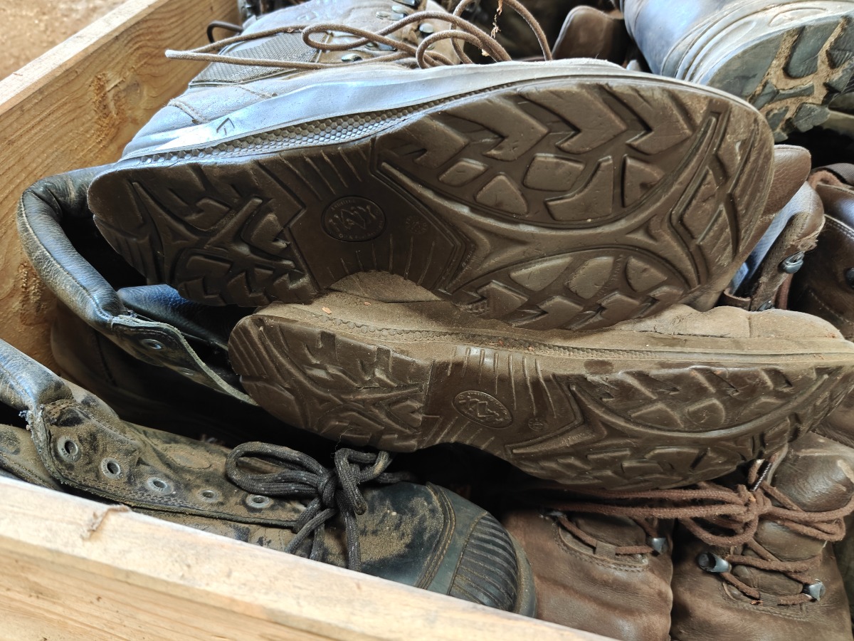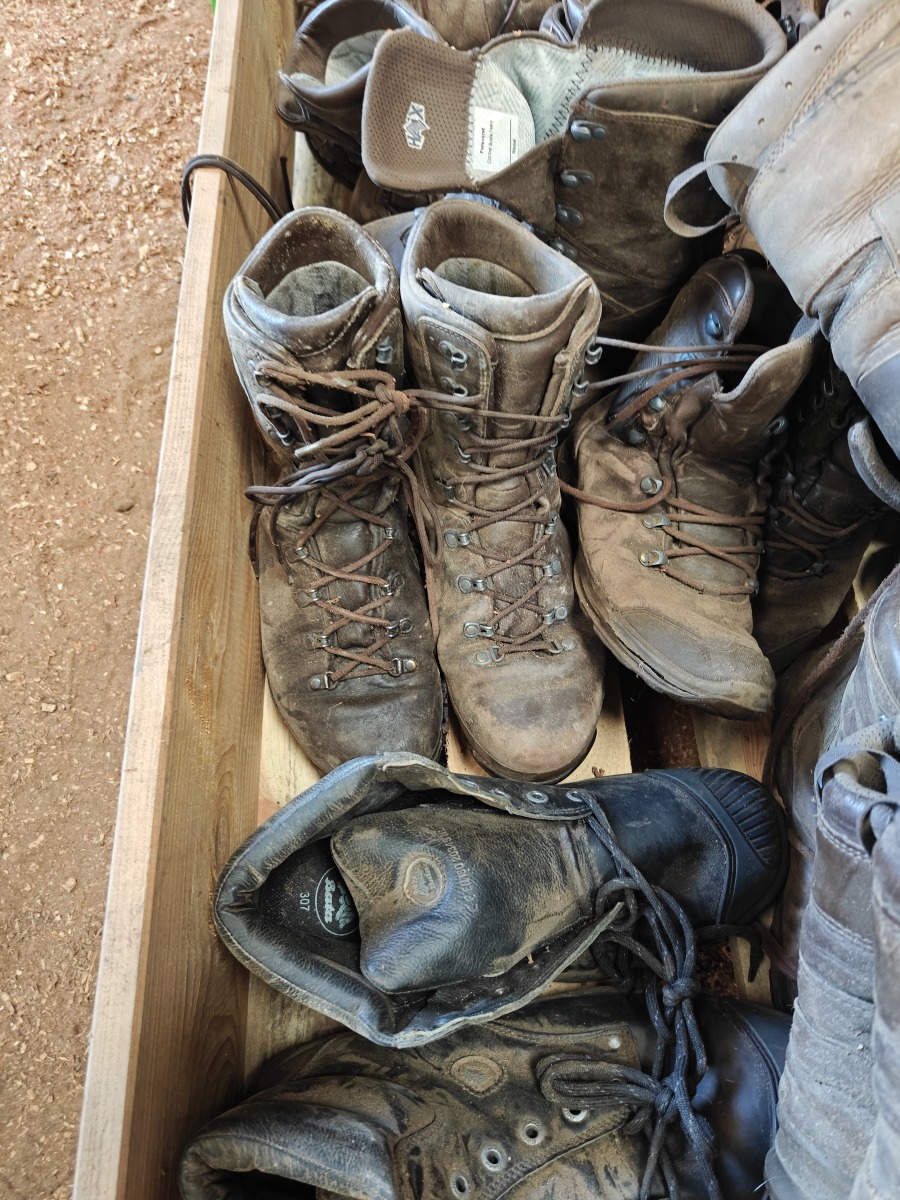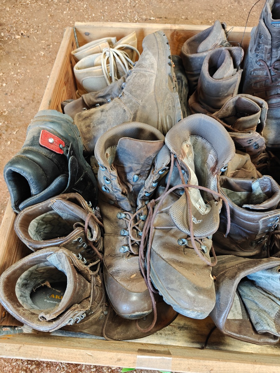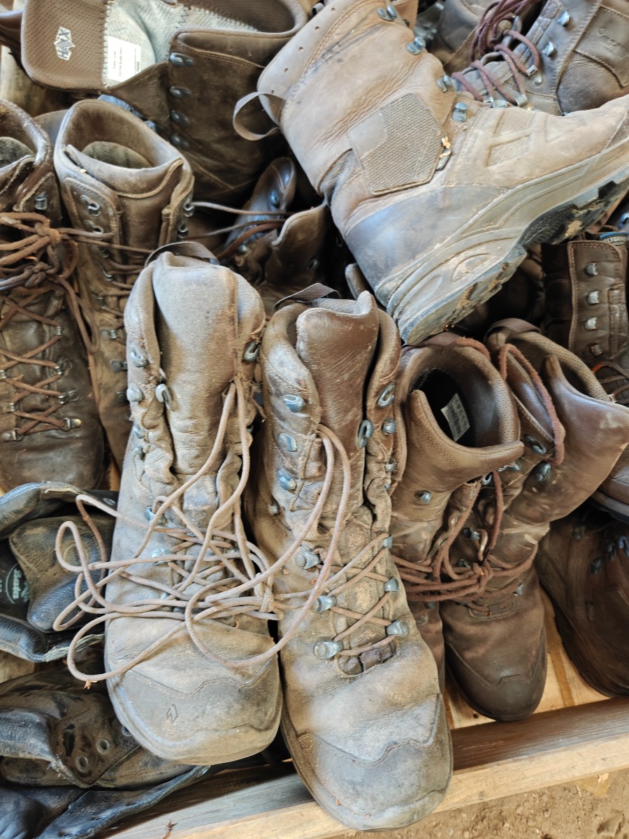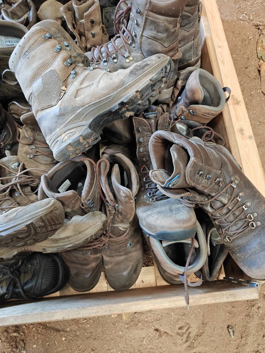 Parti brugte & nye sko & støvler, træger til rengøring, tøm pallen, sælges for virksomhed.