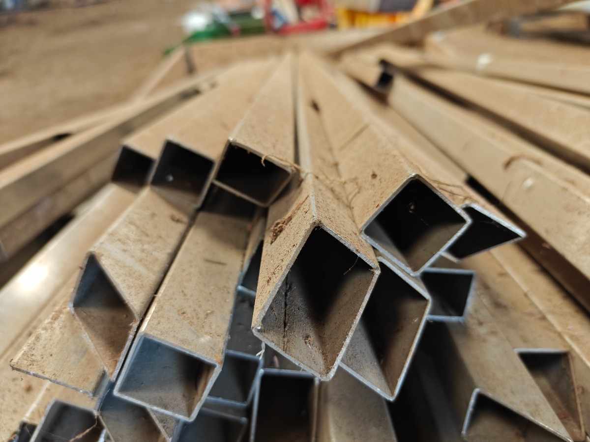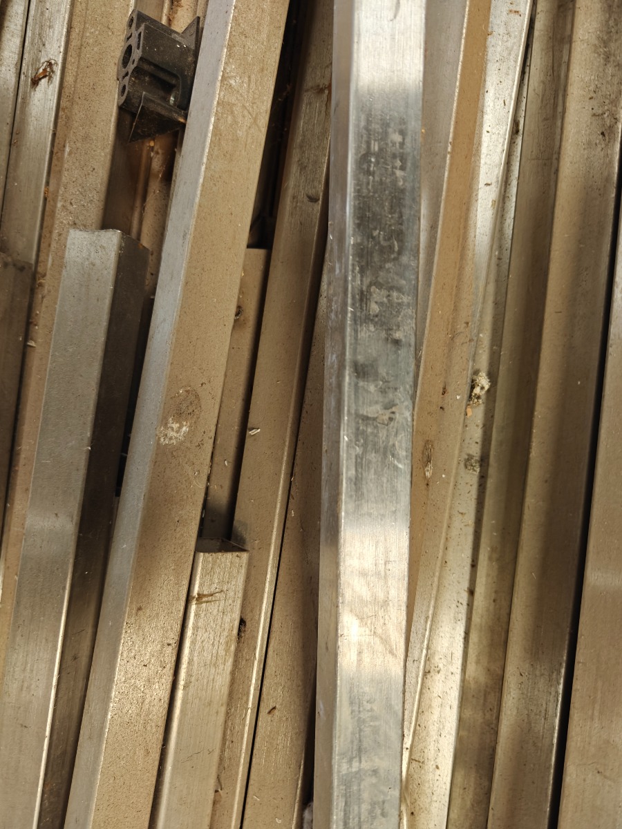 Parti rustfri stål profiler 25 x 25 mm cam 1,5 m lange ca. 80 stk, sælges for virksomhed.