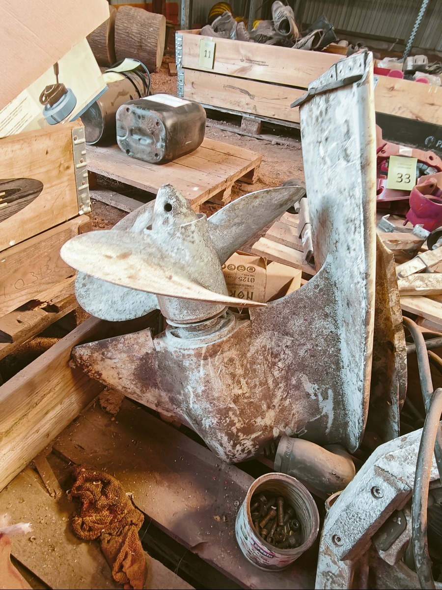 Skruer & styr til båd. ok stand, sælges for virksomhed.