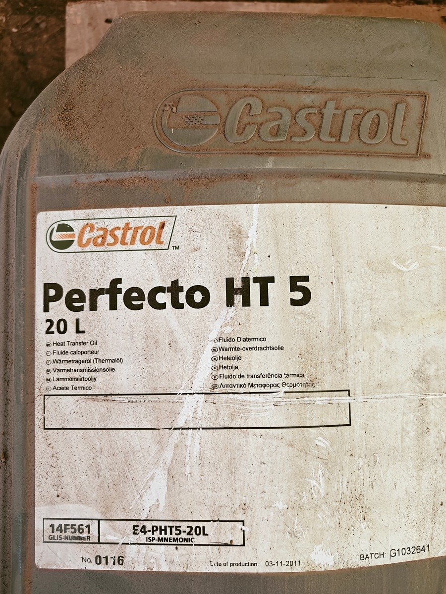 1 stk 20 L dunk Castrol Pefekto HT 5 ca halv fuld, 1 stk 20 L dunk  MEROPASYNLUBE WS 220 ubrudt dunk og 1stk 20 L spand kompressor olie CORENA S2 P, ubrudt dunk. Sælges for virksomhed.