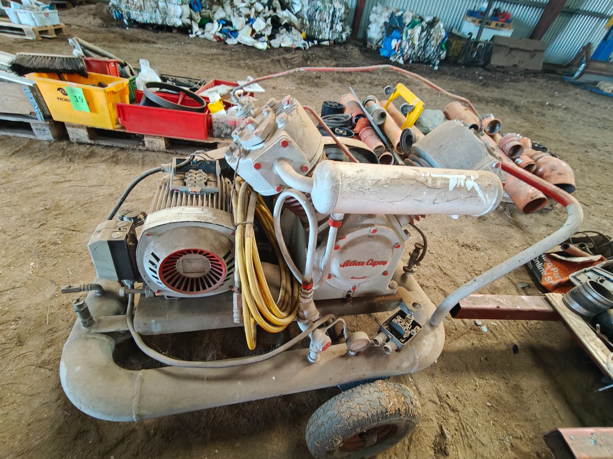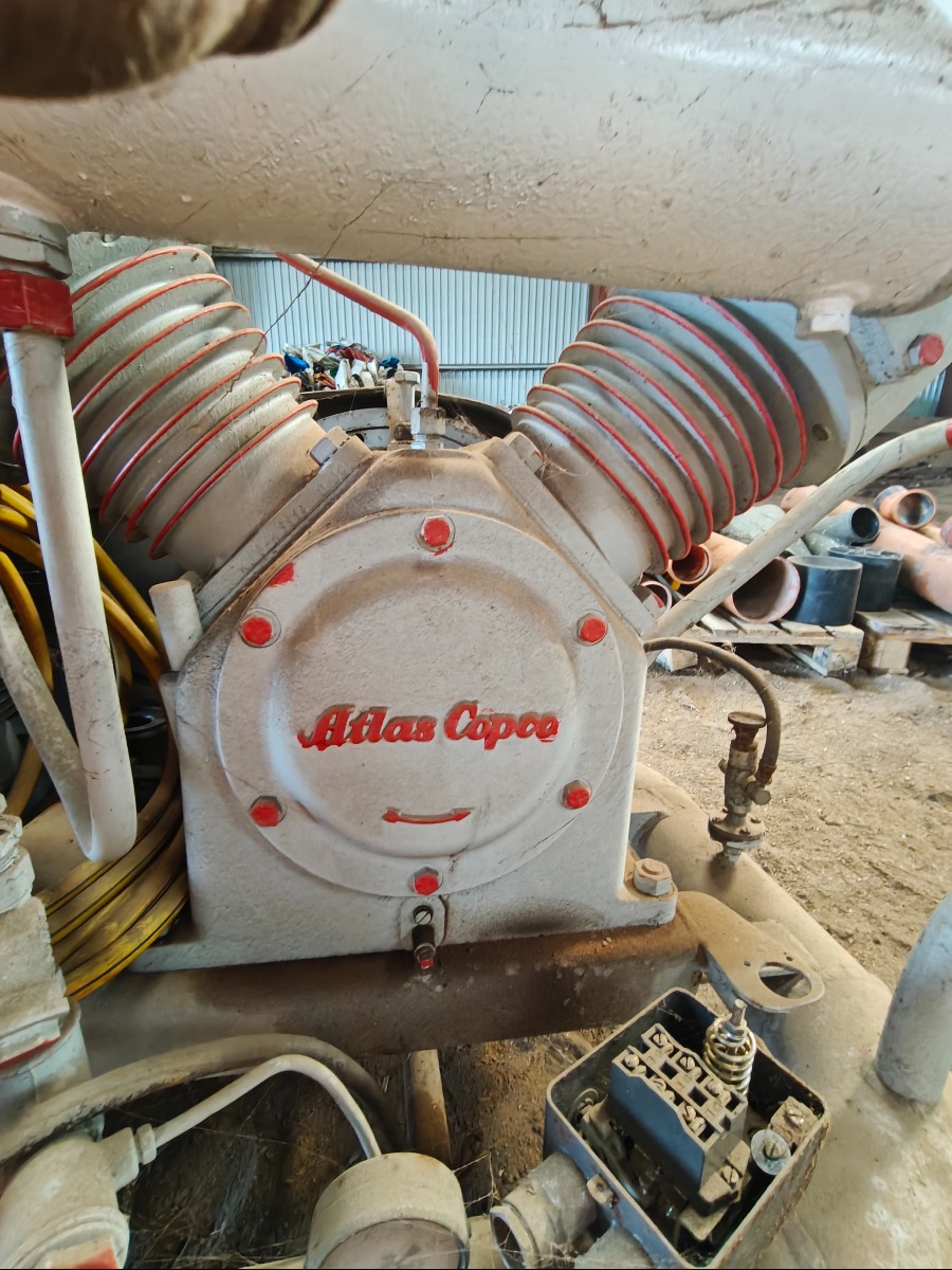 Atlas copco stempel kompressor med tilhørende trykbeholder, virkede ved henstilling. Sælges for virksomhed.