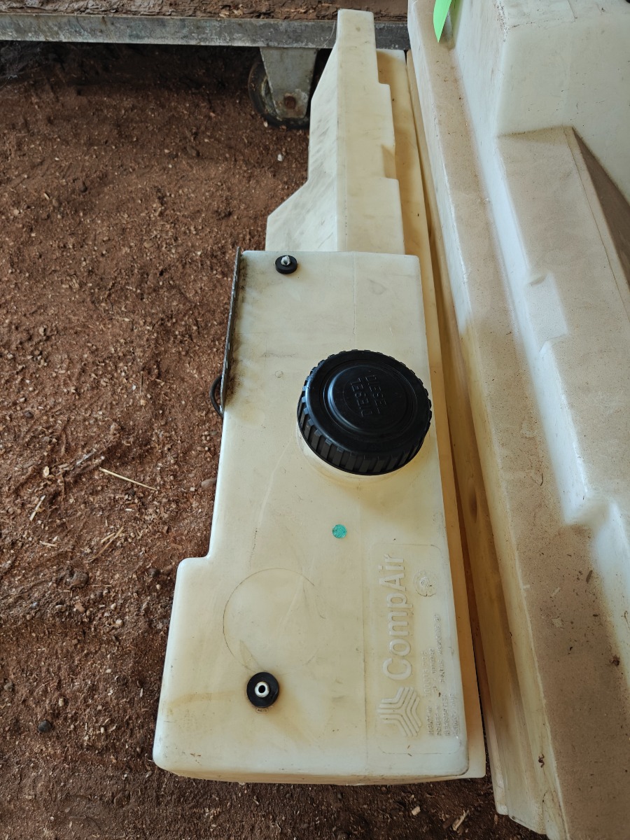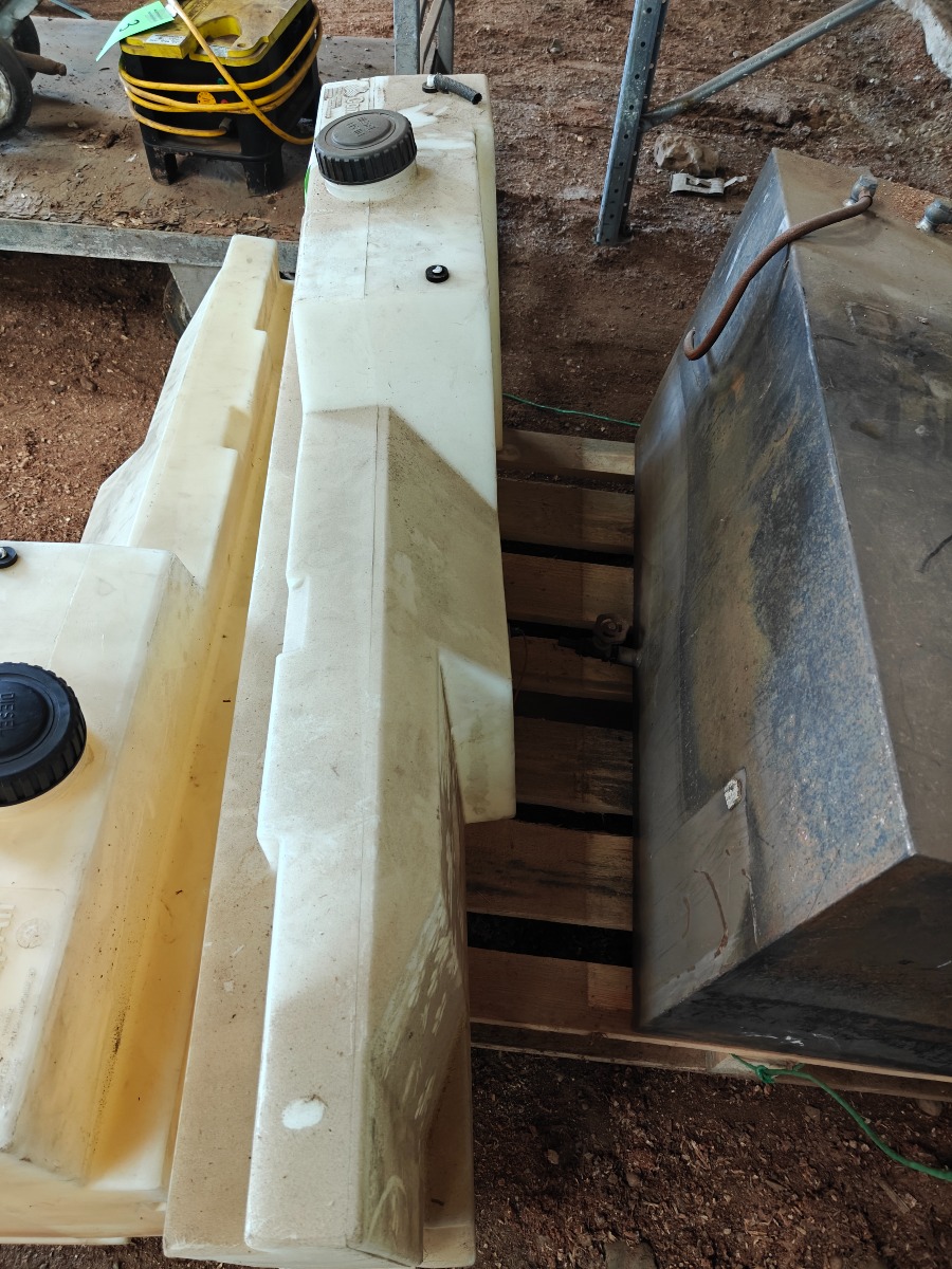 Tanke til vand / olie 2 stk i rustfrit stål, 1 måler L 100 x D 50 x H 50 cm, den anden måler L 100 x D  20 x H 55 cm. 2 stk i plast måler L 130 x D 27 x H 55 cm ok stand, ingen synlige skader, sælges for virksomhed.