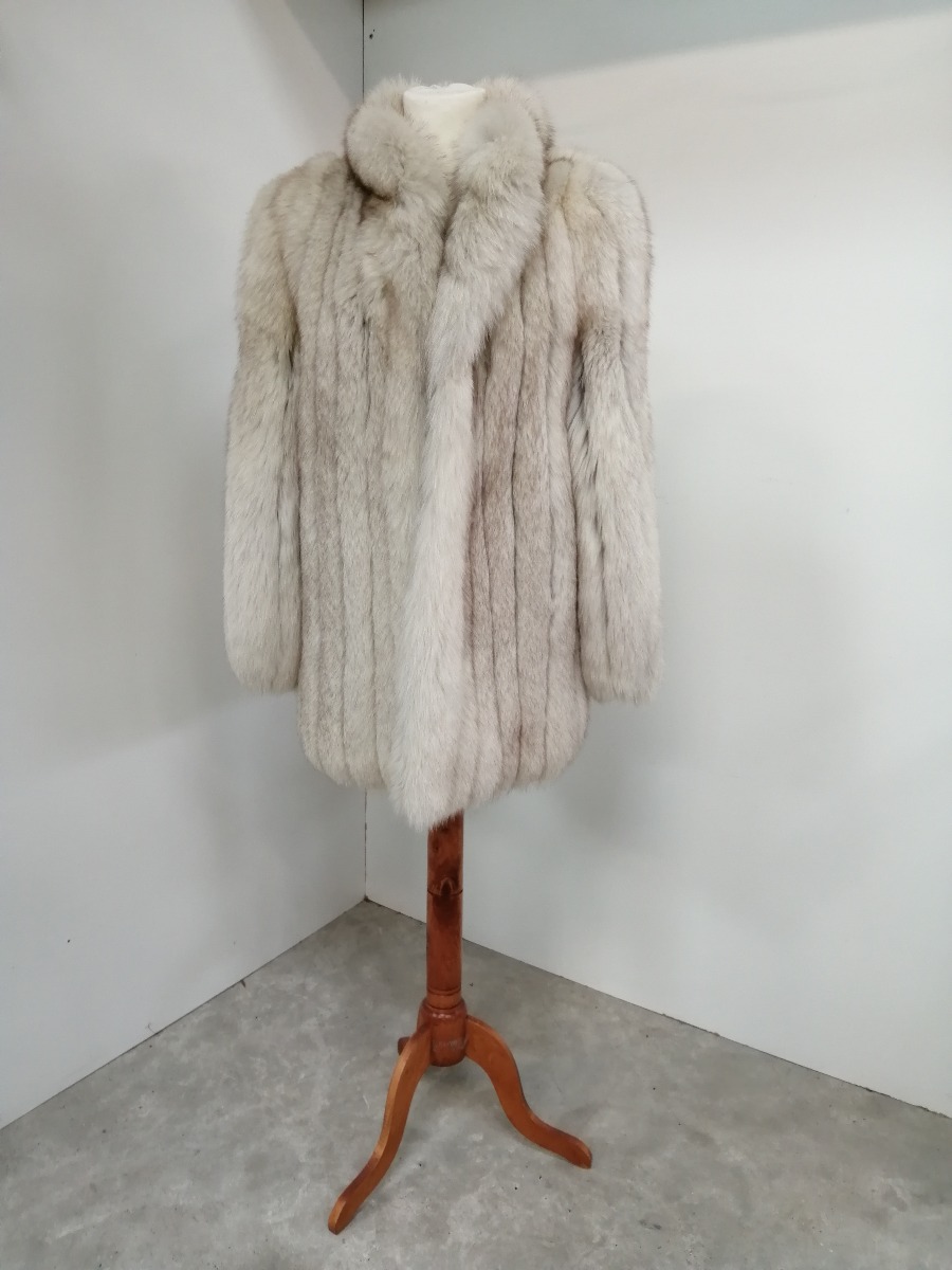 Kort pelsjakke af sølvræv. (Fotomodellen er en str. M). Fremstår med minimalt slid.
