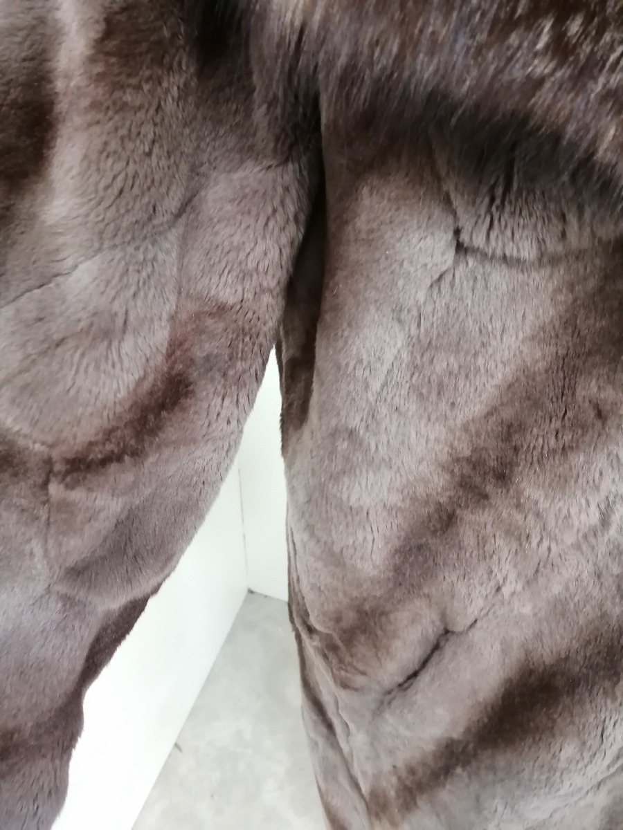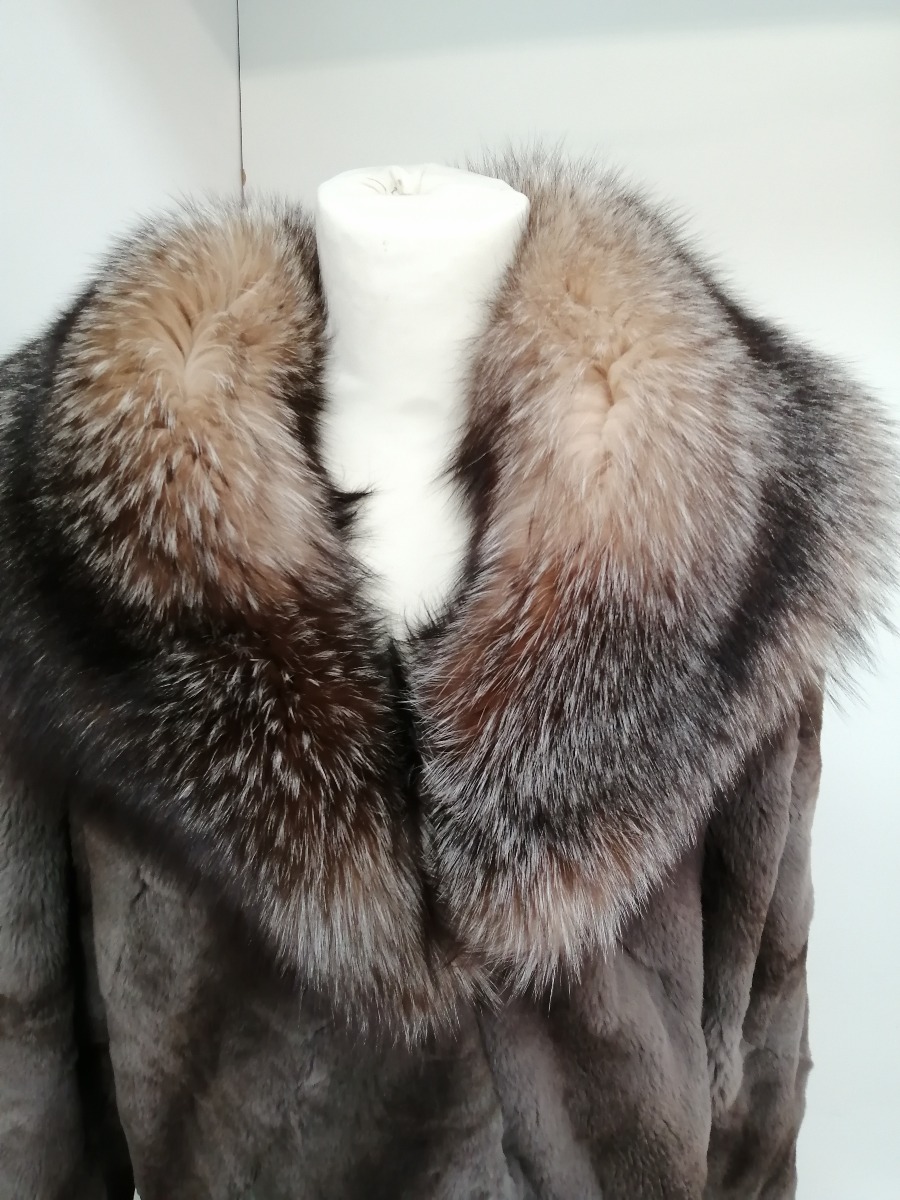 Birger Christensen pelsfrakke af klippet væsel med krave af sølvræv. (Fotomodellen er en str. M). Fra privat eje. Fremstår med minimalt slid.