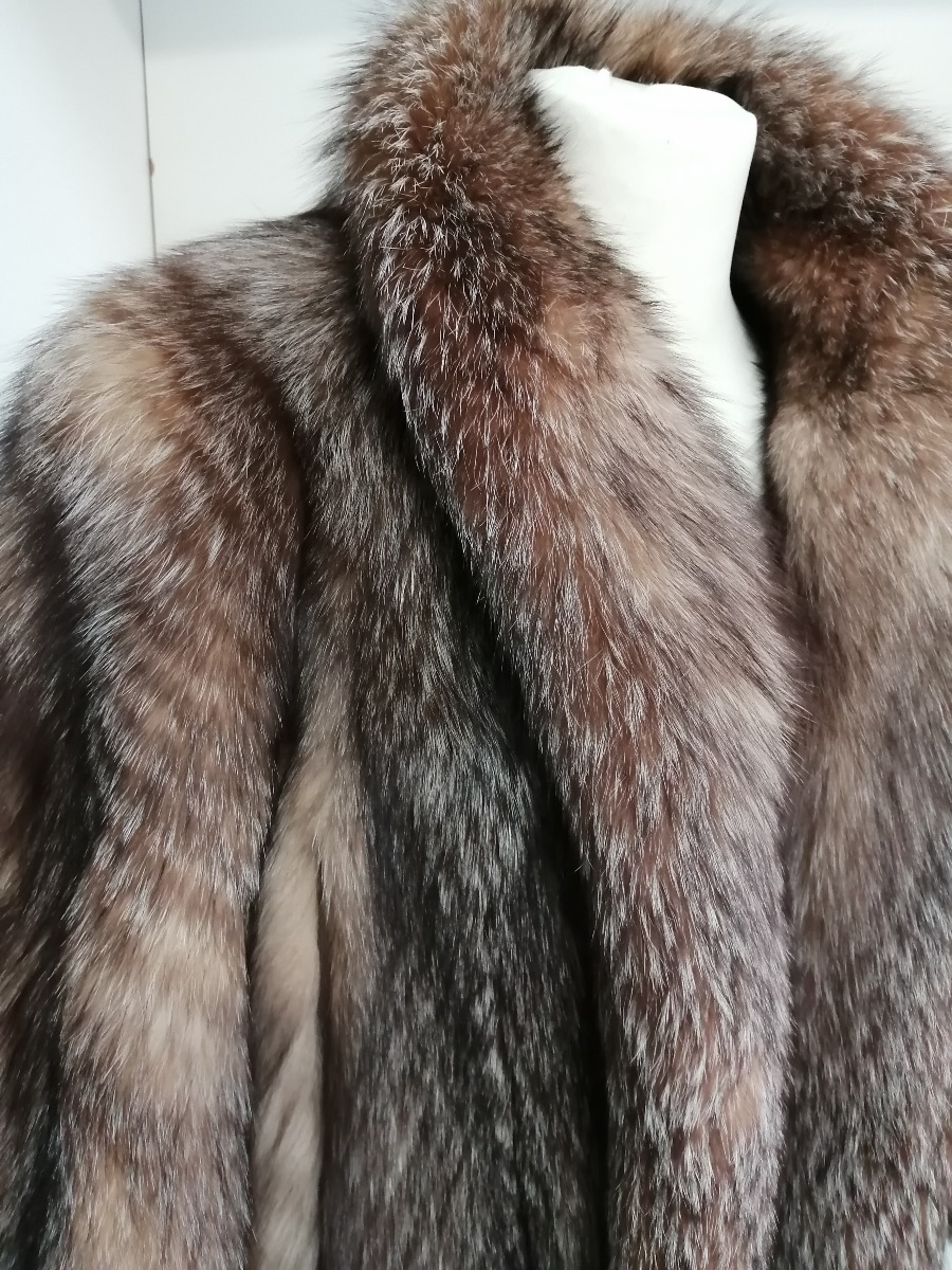 Birger Christensen pels af sølvræv. (Fotomodellen er en str. M). Brugt, men meget pæn stand.