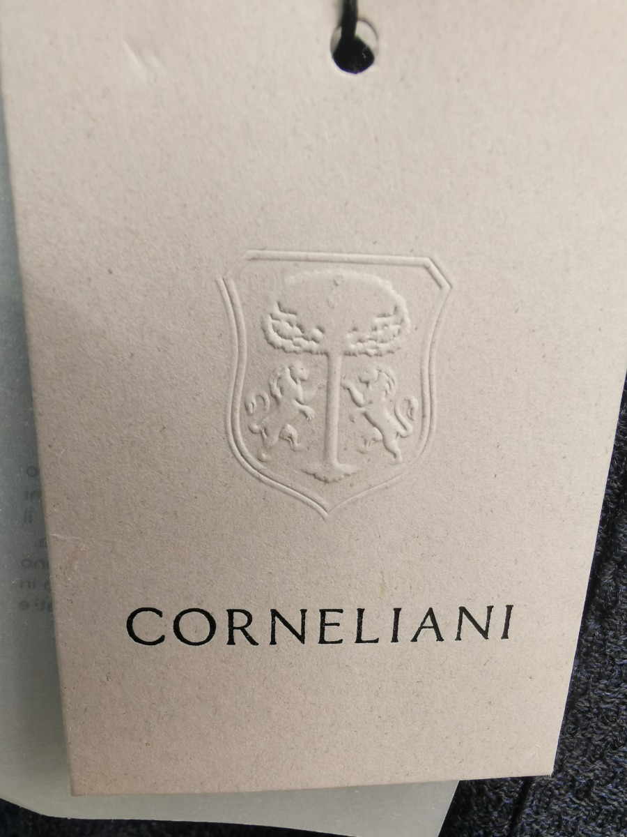 Sommer blazer jakke til herrer fra Corneliani, str. 52, mørkeblå meleret stof, uden for, men med mange fine detaljer. Ubrugt, og stadig med skiltning