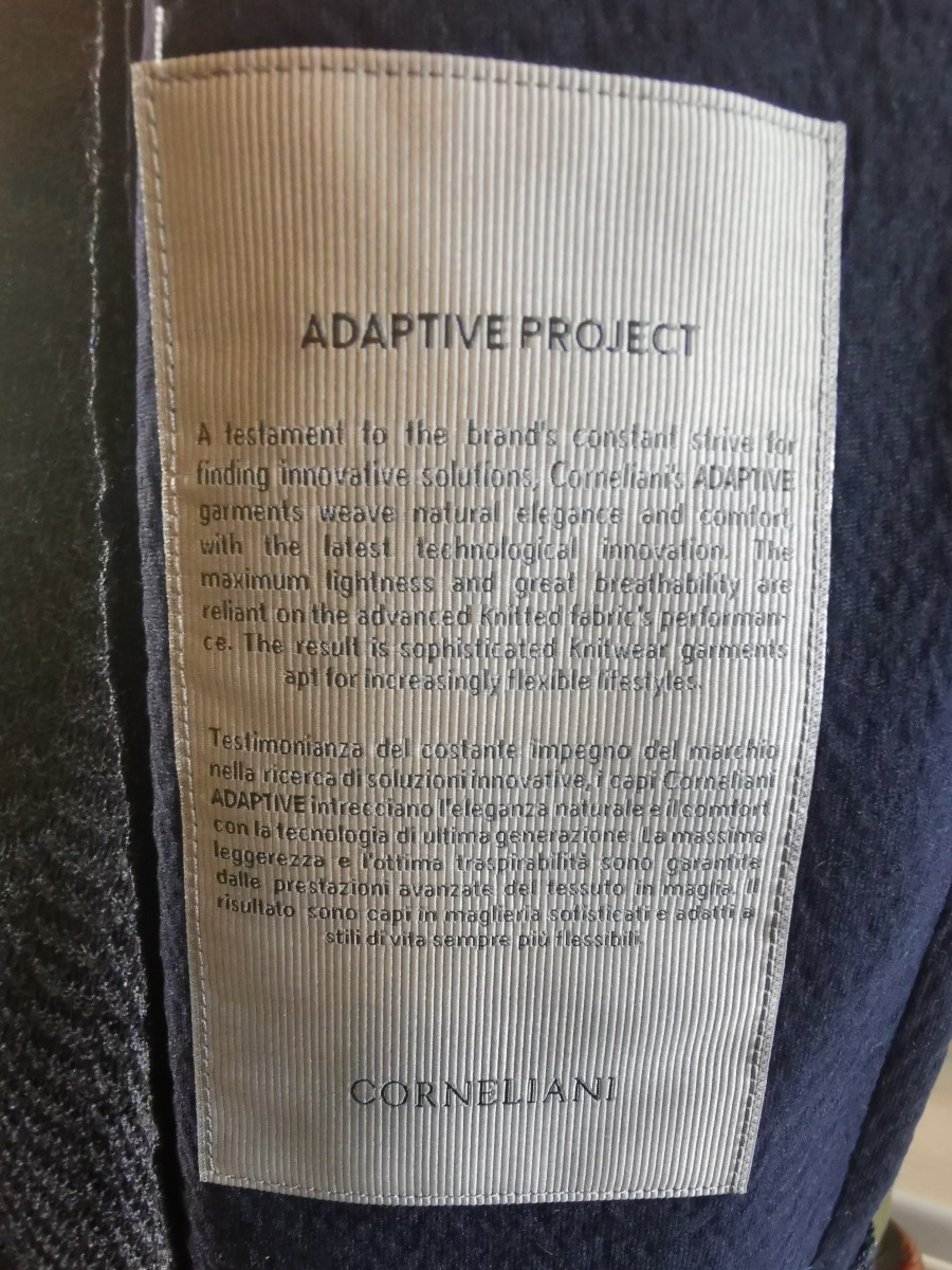 Sommer blazer jakke til herrer fra Corneliani, str. 54 (? - da merkat  for str. angivelse mangler), mørkeblå meleret stof, uden for, men med mange fine detaljer. Ubrugt, og stadig med skiltning.