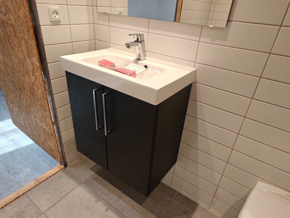 Håndvask m/blandingsbatteri, underskab & spejl.
