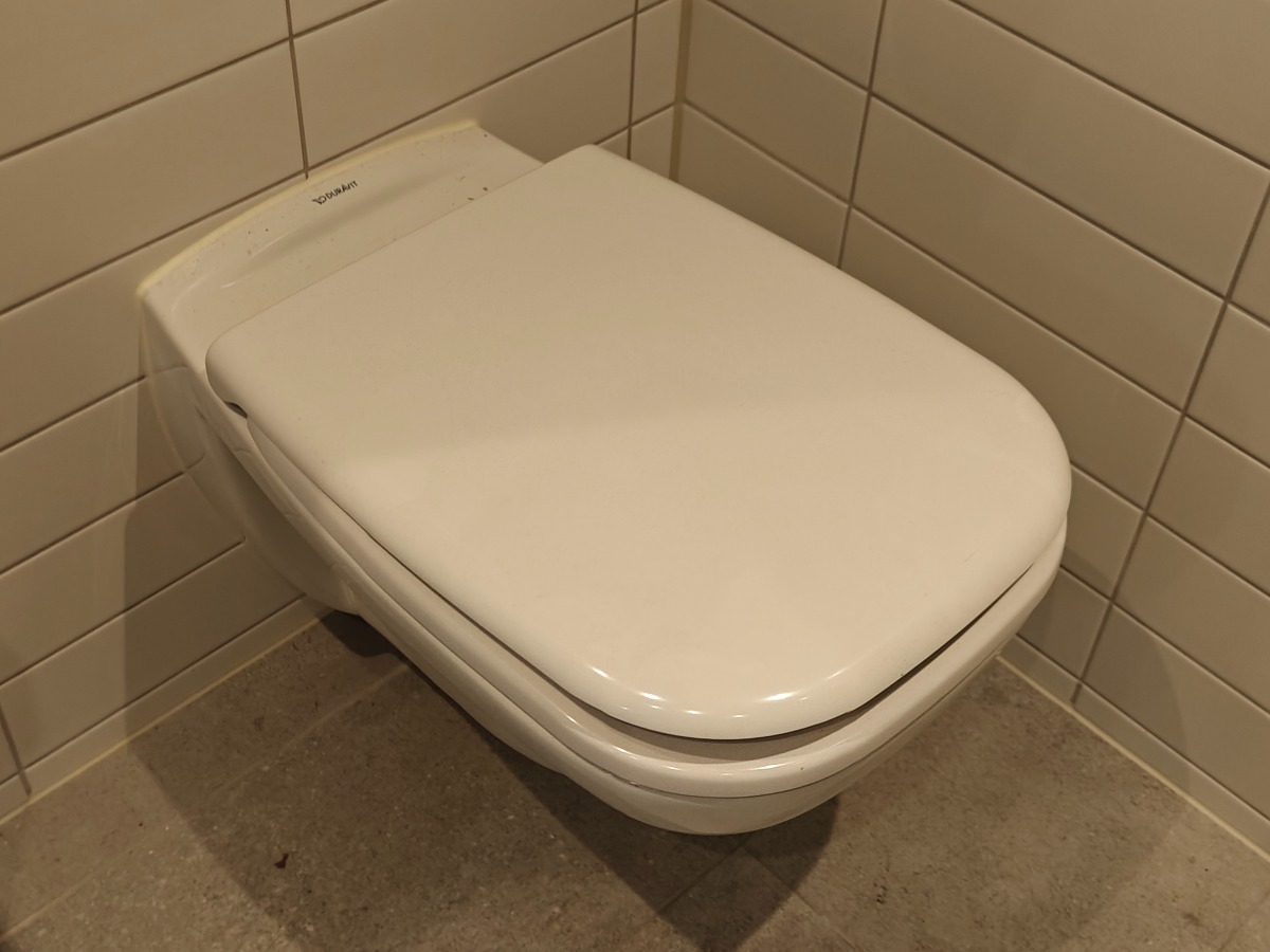 Væghængt toilet Mrk Duravit samt toiletrulleholder.