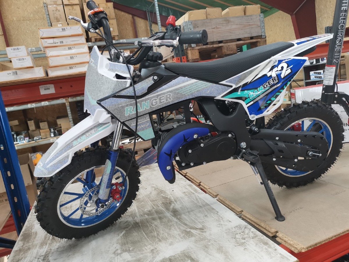 Sort crosser / dirtbike - 49cc og 10 tommer. Automatisk gearskifte. Med afbryderarmbånd, som stopper motorcyklen i tilfælde af fald. Motor: 1 cylinder / 2 takt. Køling: luft. Hastighed: 45 km/t. Mål: H: ca. 60 cm til sæde & ca. 130 cm i længde. Usamlet, ubrugt. Bemærk: Billedet er taget af en blå model.