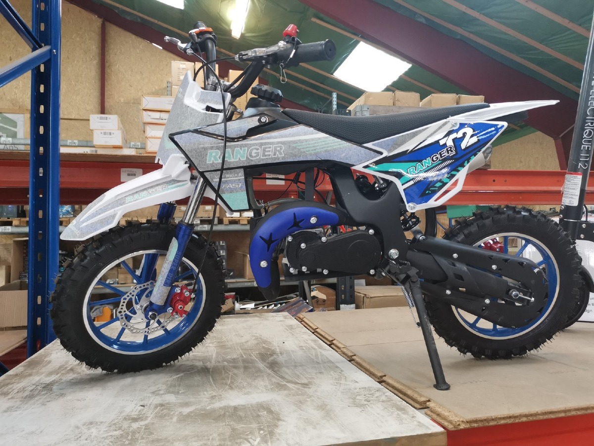 Sort crosser / dirtbike - 49cc og 10 tommer. Automatisk gearskifte. Med afbryderarmbånd, som stopper motorcyklen i tilfælde af fald. Motor: 1 cylinder / 2 takt. Køling: luft. Hastighed: 45 km/t. Mål: H: ca. 60 cm til sæde & ca. 130 cm i længde. Usamlet, ubrugt. Bemærk: Billedet er taget af en blå model.