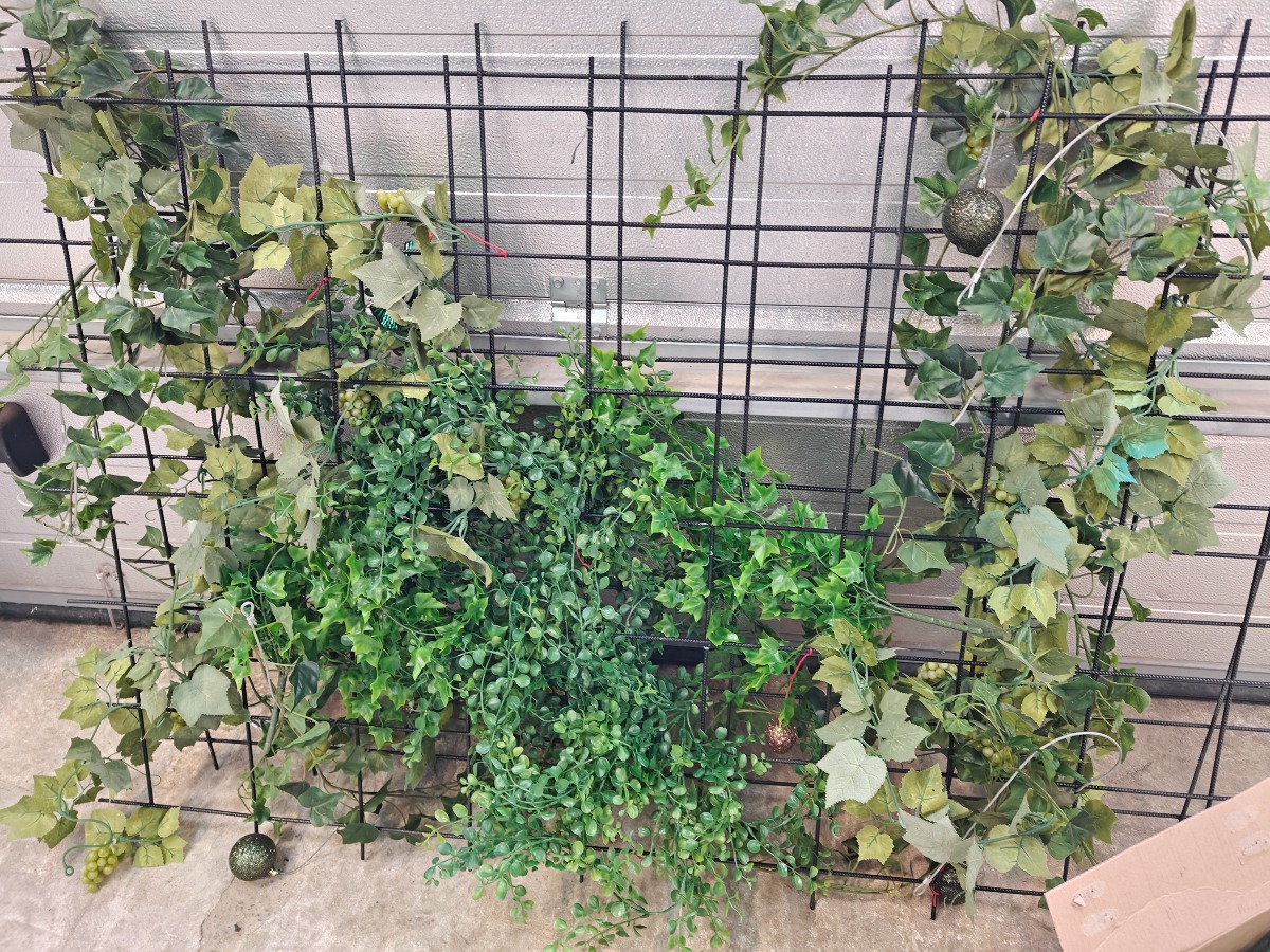 Rionet til ophæng sortlakerede. Plastblomster medfølger.