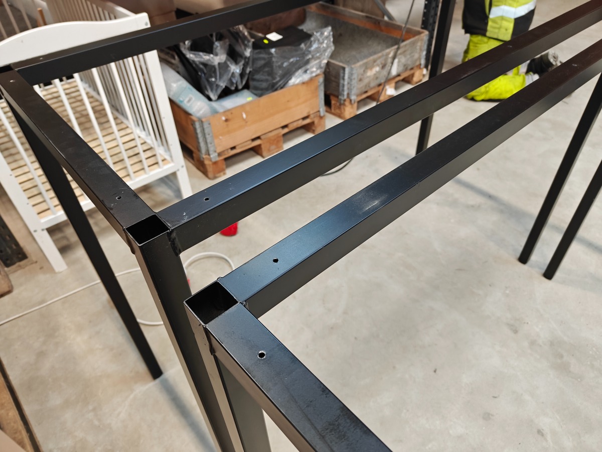 Understel til bordplader af sortlakeret metal. 104 x 140 x 59,5 cm. Mindre brugsspor forekommer.