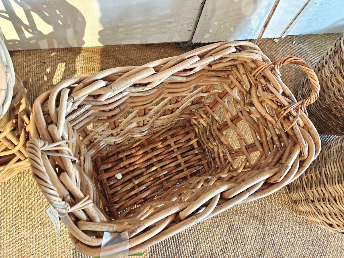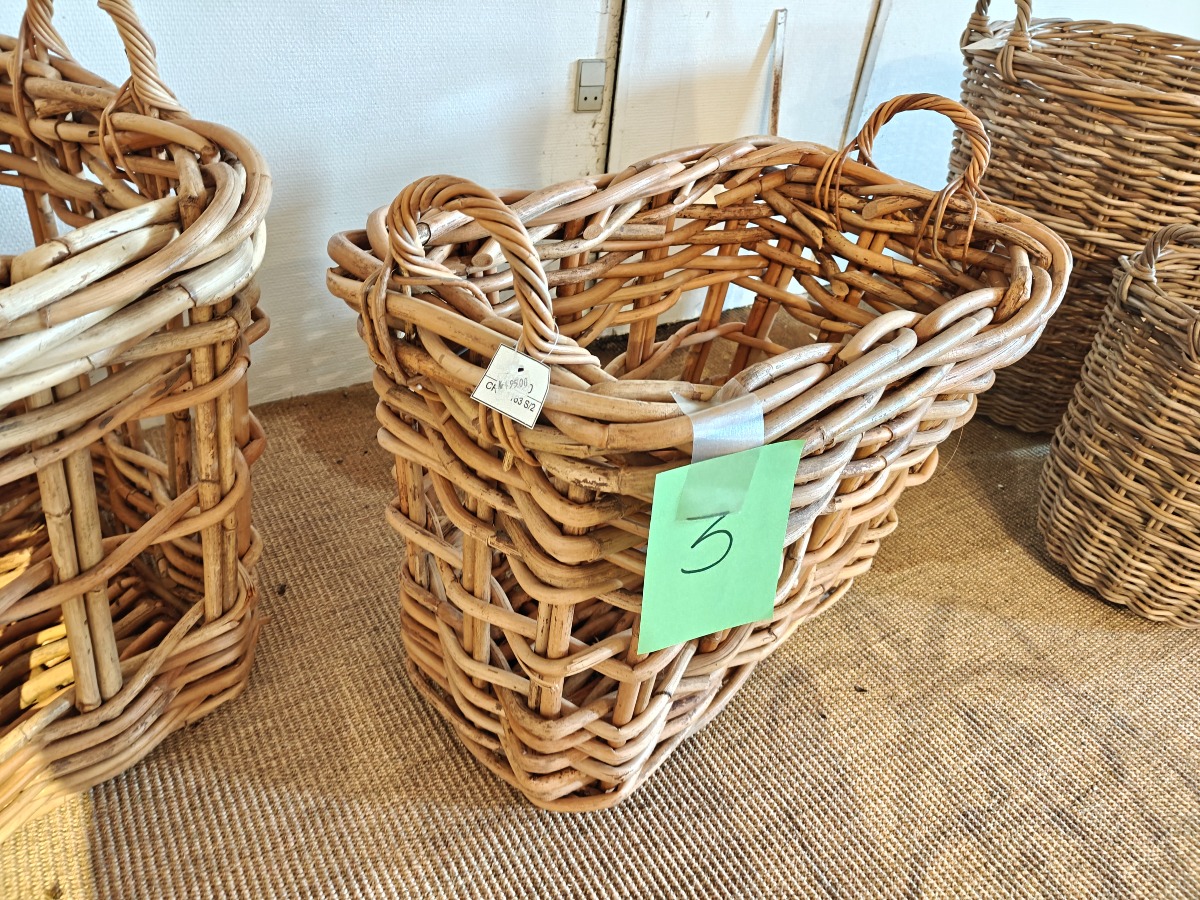 Kurv i kraftig flet.  53 x 63 x 43 cm. Varen stammer fra en nedlagt brugskunst-butik. Eventuelle brugsspor kan forekomme.