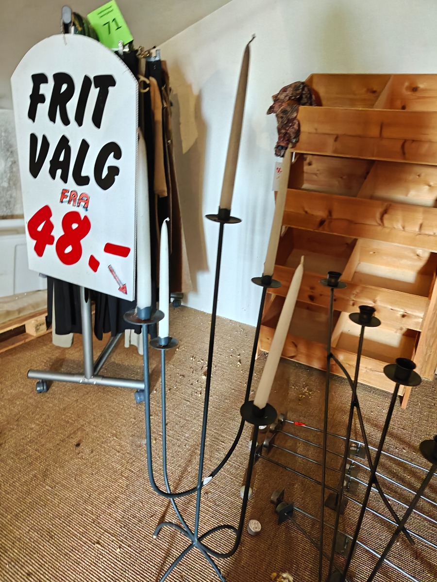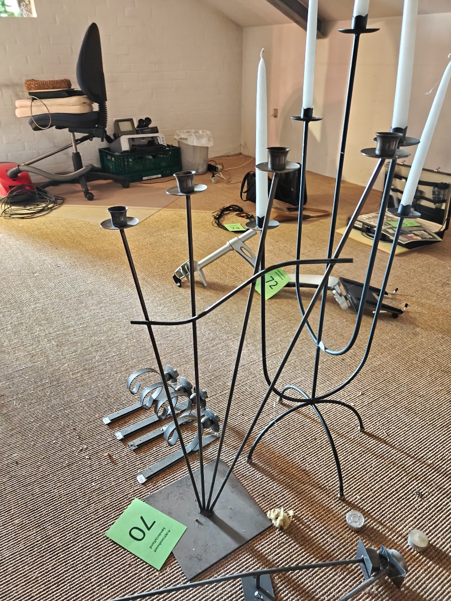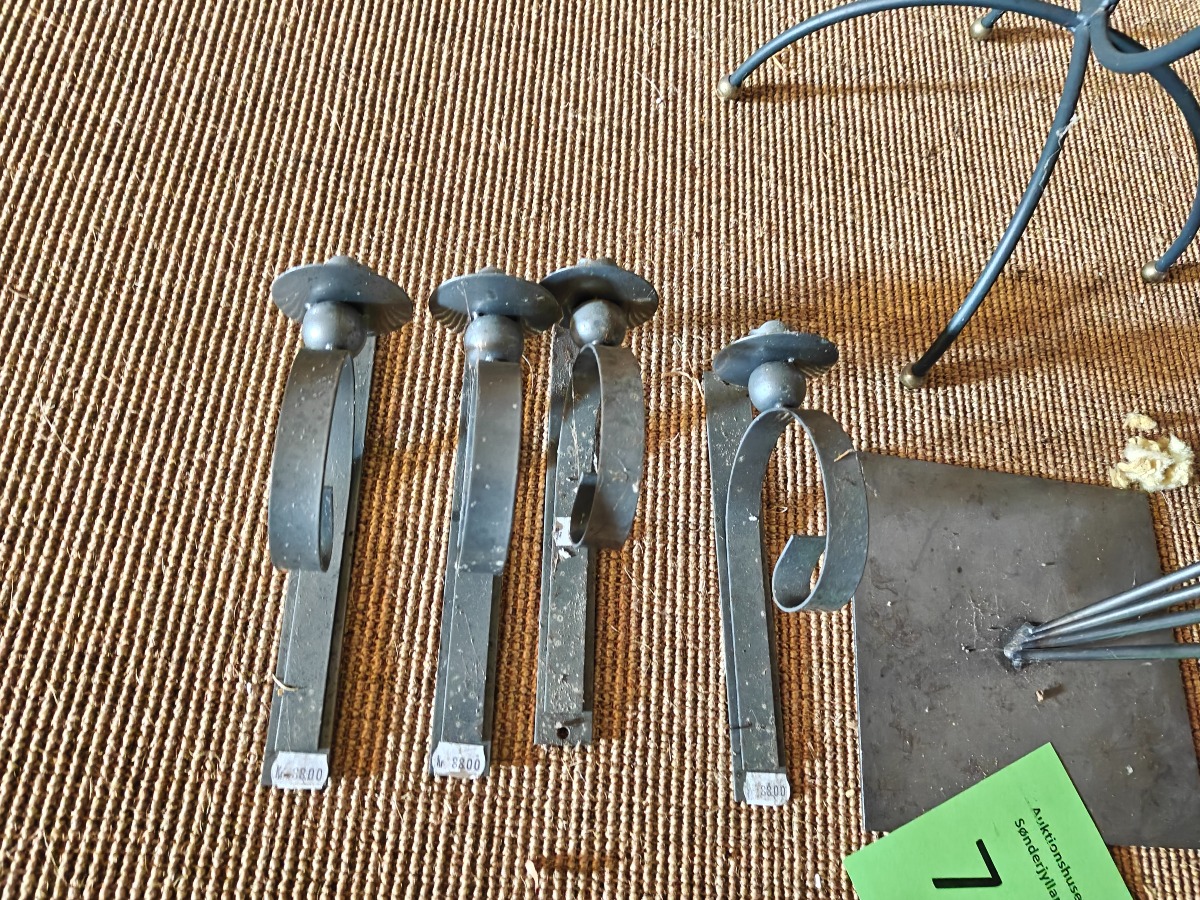 Forskellige stager af jern. Både væg og gulvstager. Varen stammer fra en nedlagt brugskunst-butik. Eventuelle brugsspor kan forekomme.