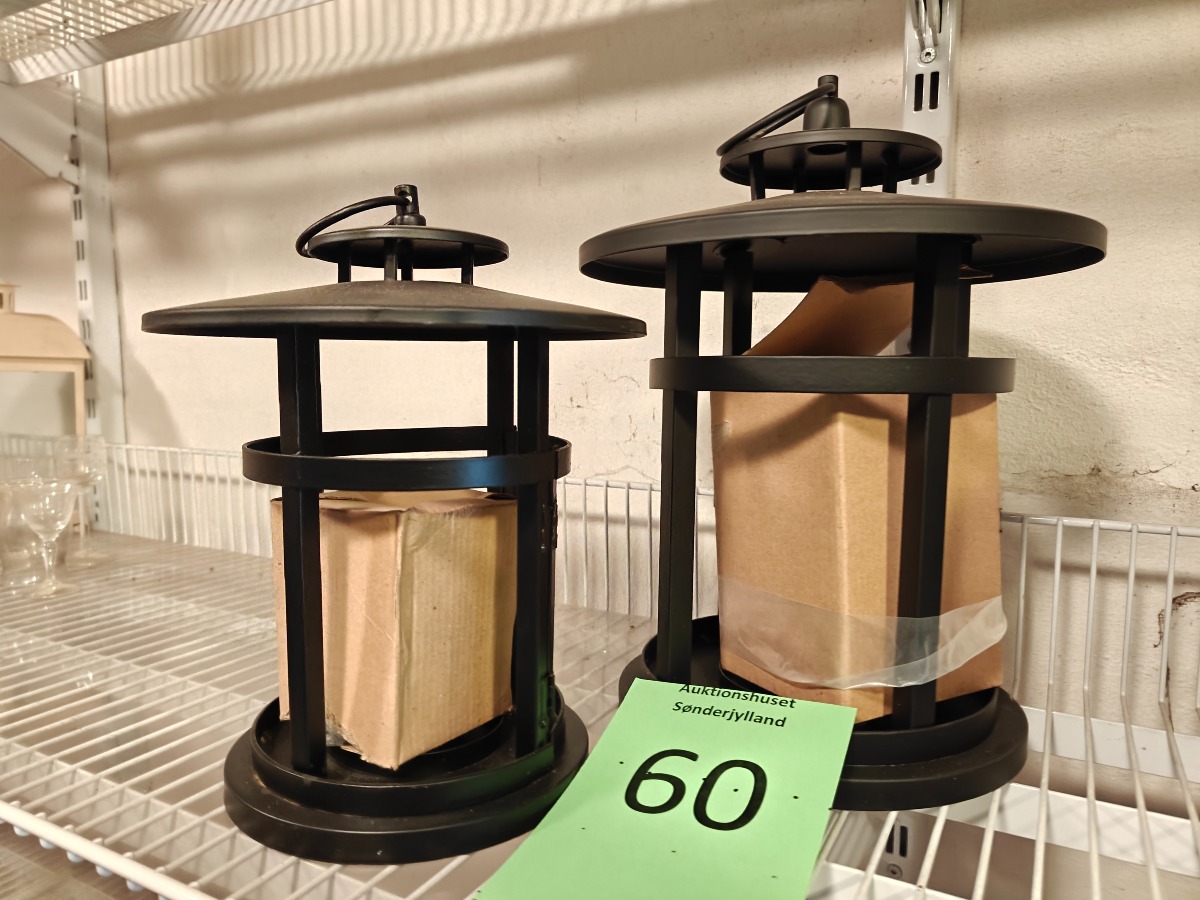 2 lanterner sortlakeret.  Varen stammer fra en nedlagt brugskunst-butik. Eventuelle brugsspor kan forekomme.