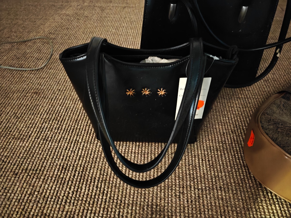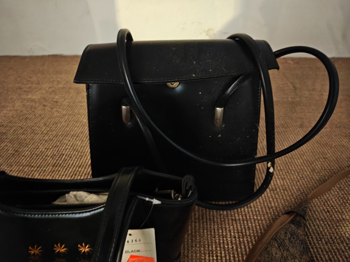 3 tasker samt bælte. Varen stammer fra en nedlagt brugskunst-butik. Eventuelle brugsspor kan forekomme.