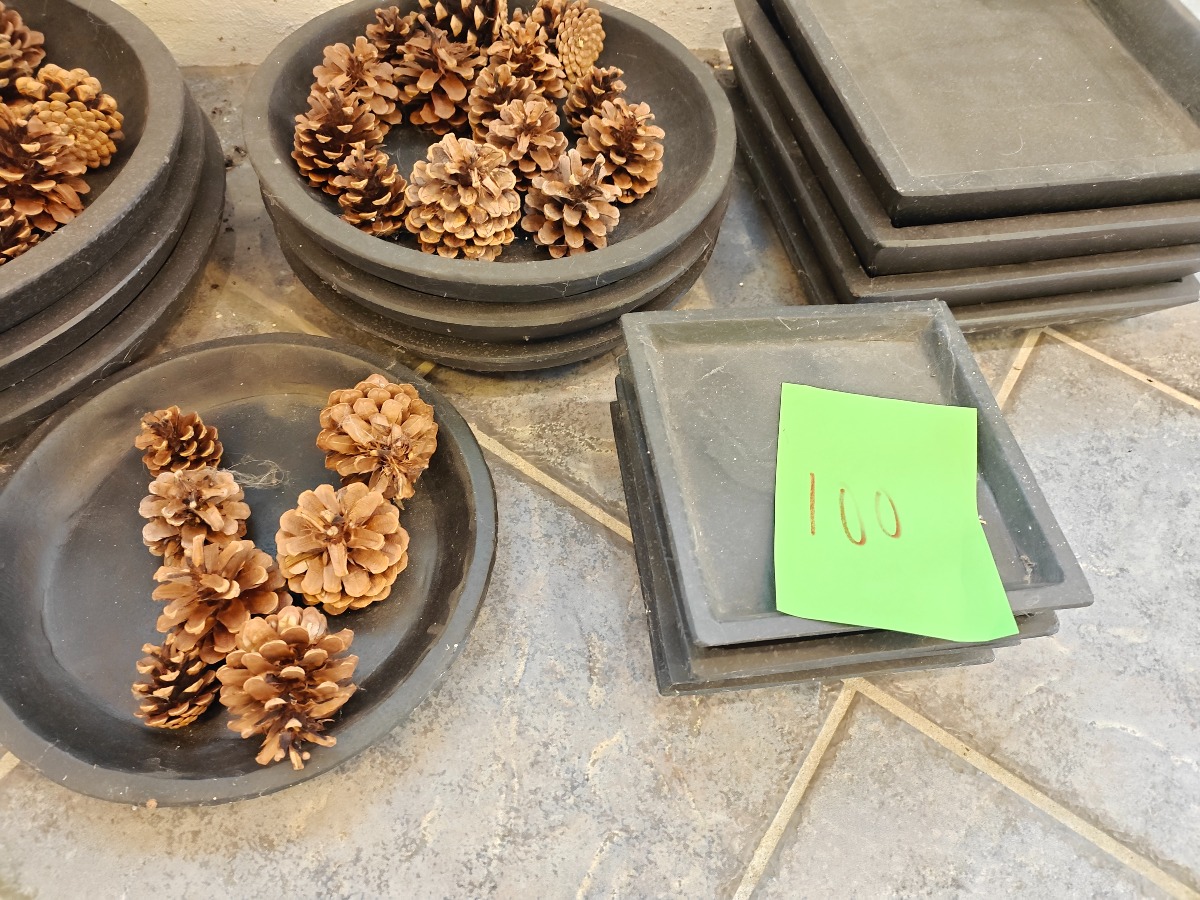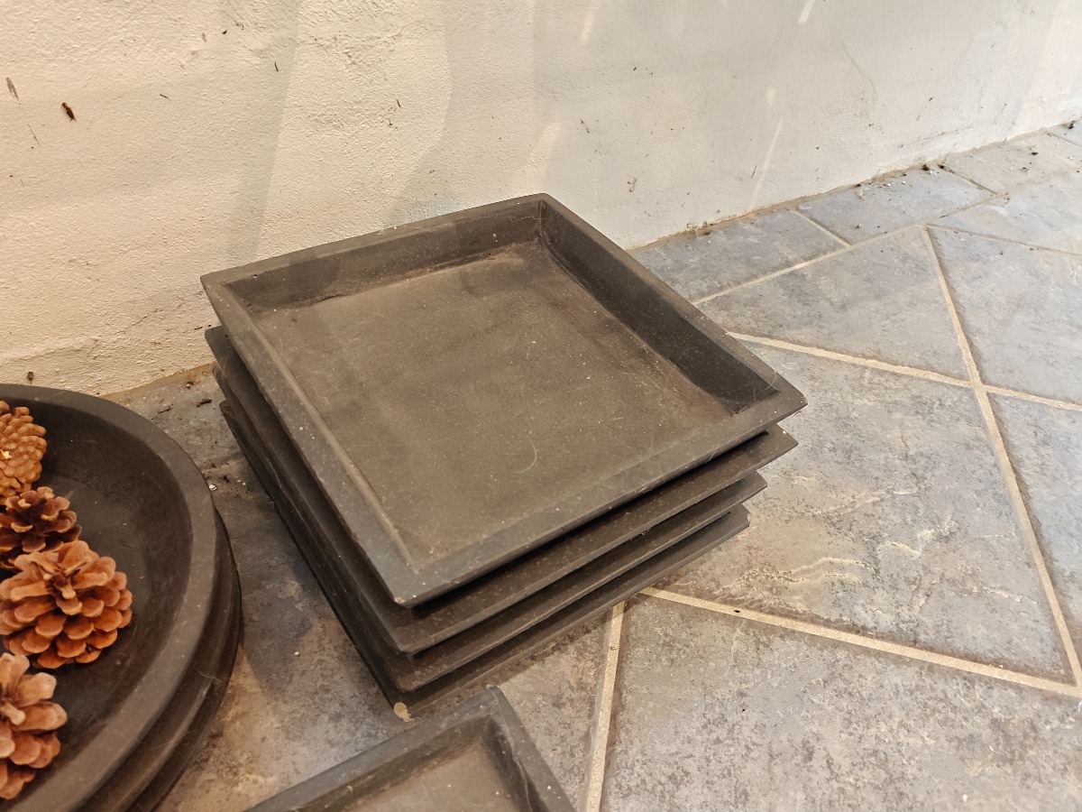 Runde og kvadratiske fade. af keramk. Ø. for runde 40 cm.  Varen stammer fra en nedlagt brugskunst-butik. Eventuelle brugsspor kan forekomme.