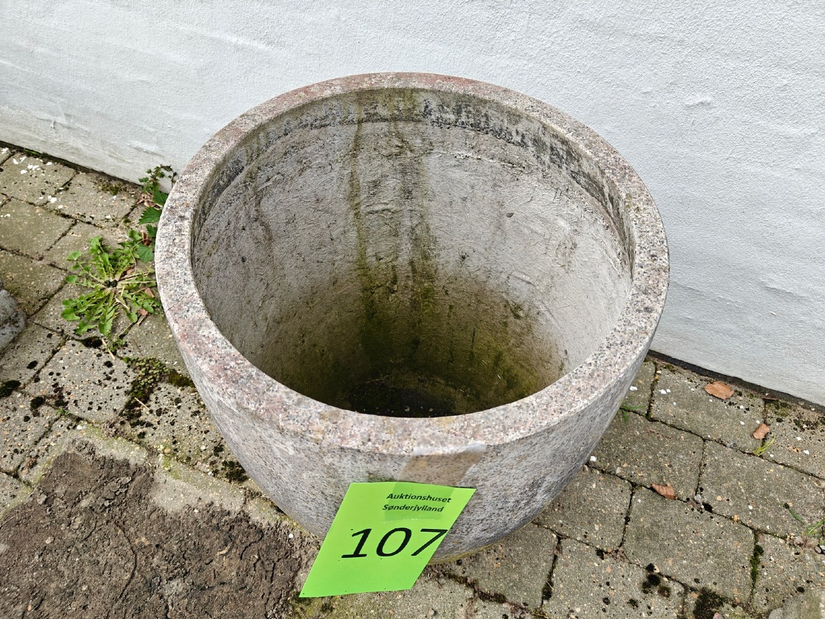 Stor krukke i fiberbeton. H. 62 cm. Varen stammer fra en nedlagt brugskunst-butik. Eventuelle brugsspor kan forekomme.