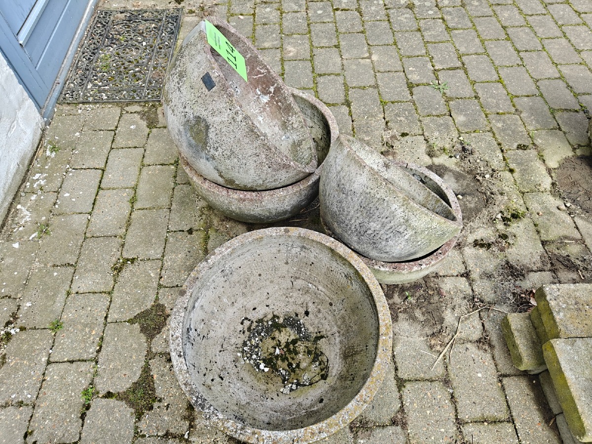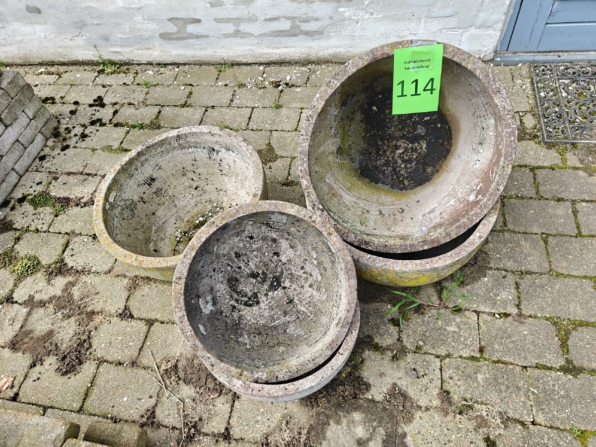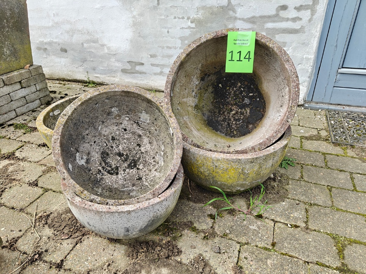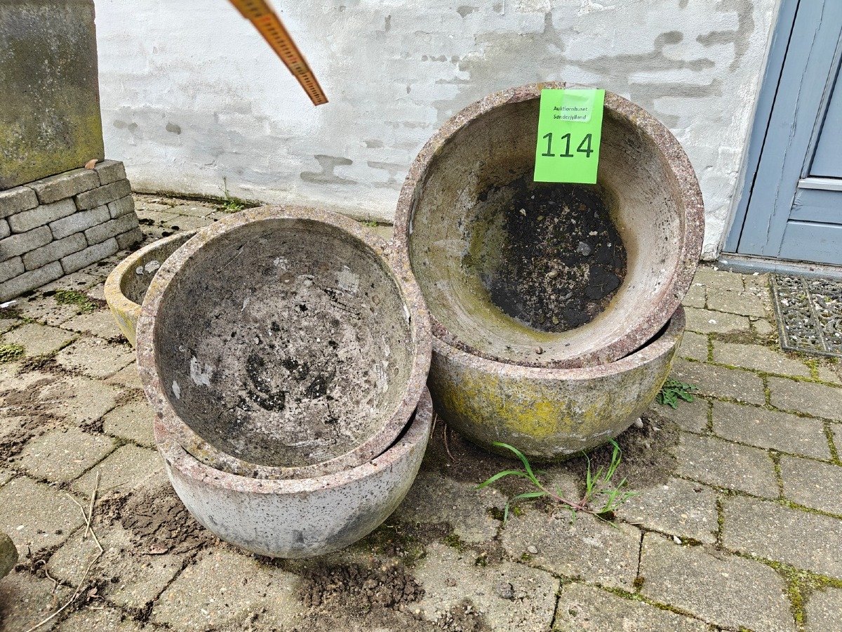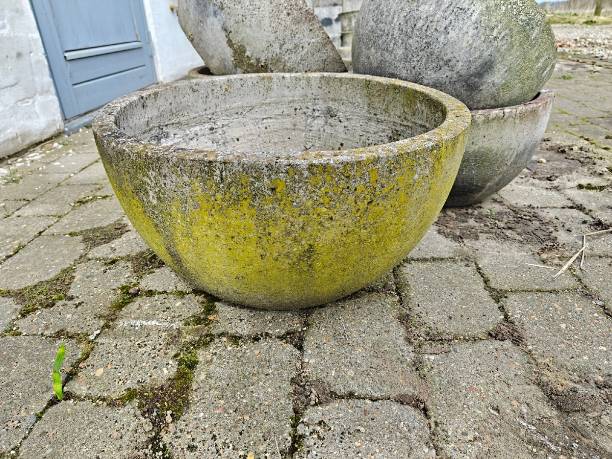 5 skåle af fiberbeton. Varen stammer fra en nedlagt brugskunst-butik. Eventuelle brugsspor kan forekomme.