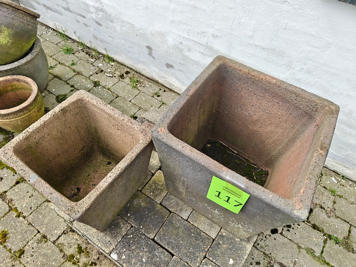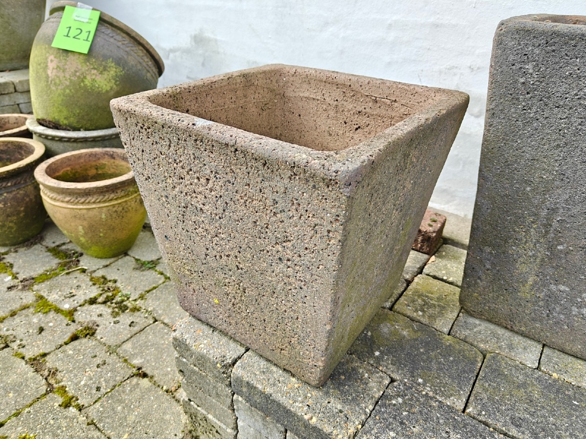 2 krukker i tilspidset form. Største 47 cm. Varen stammer fra en nedlagt brugskunst-butik. Eventuelle brugsspor kan forekomme.