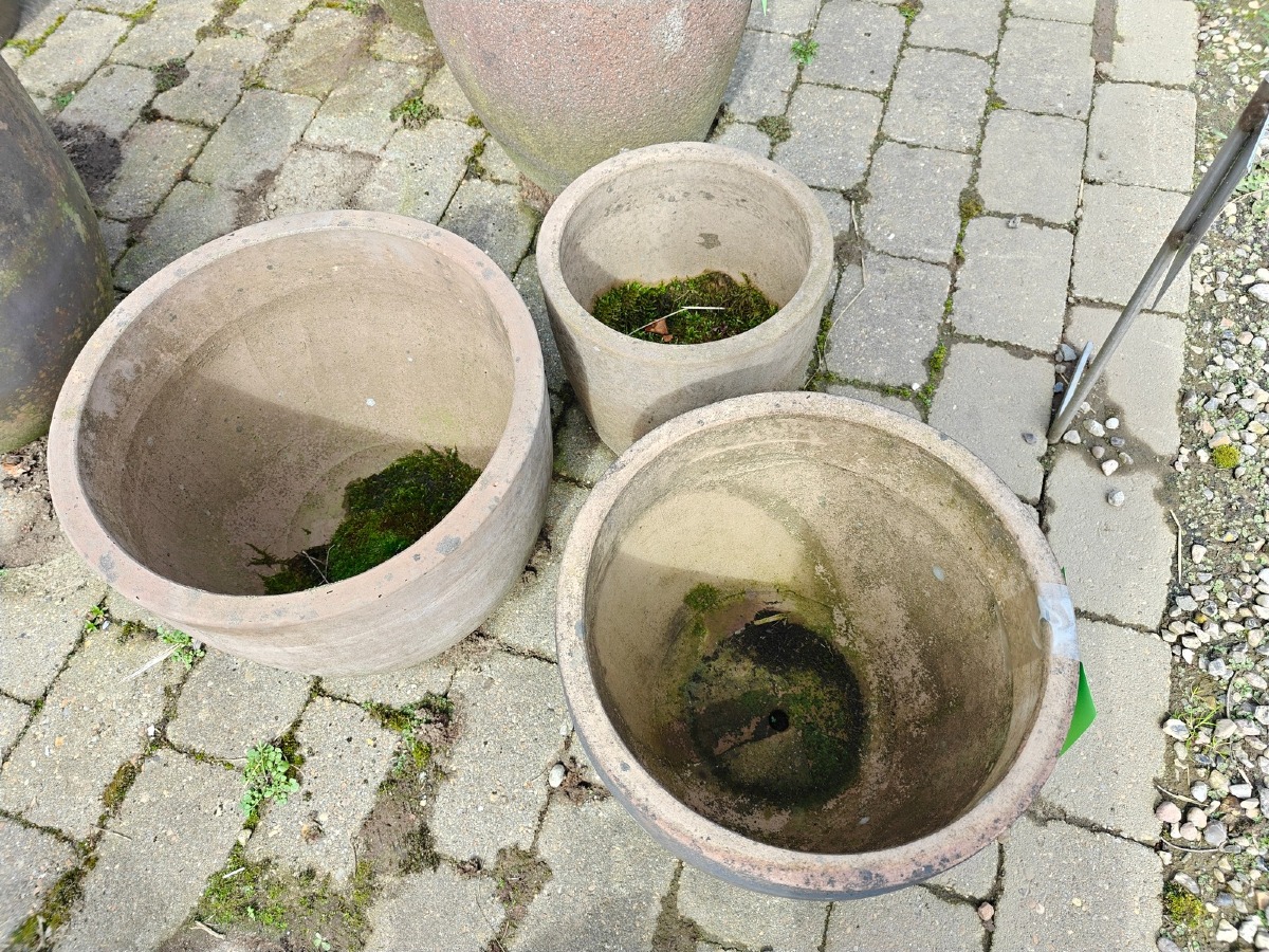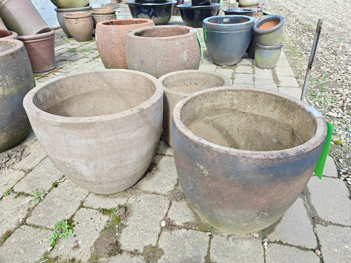 3 rustikke krukker. 32 x 40 cm. for største. Varen stammer fra en nedlagt brugskunst-butik. Eventuelle brugsspor kan forekomme.