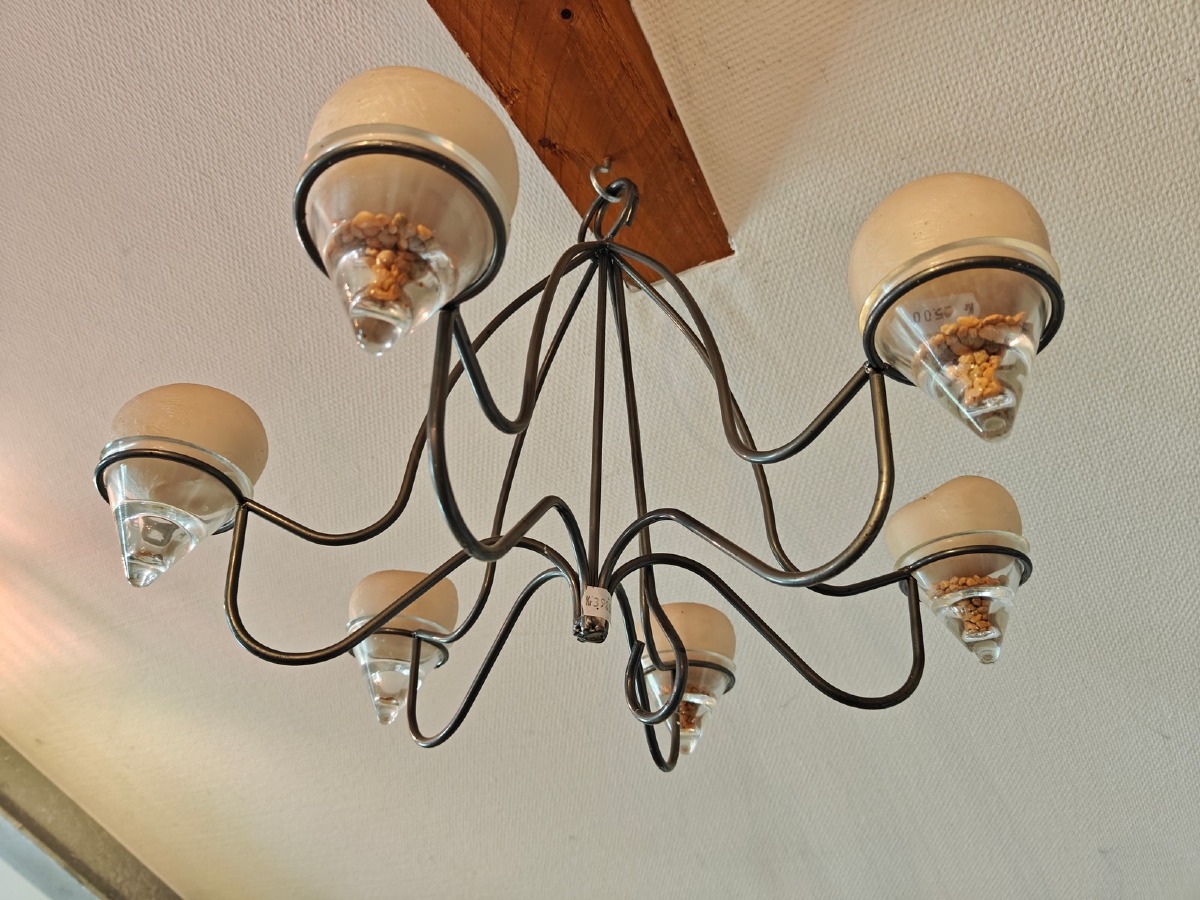 6-armet lysekrone af rundjern