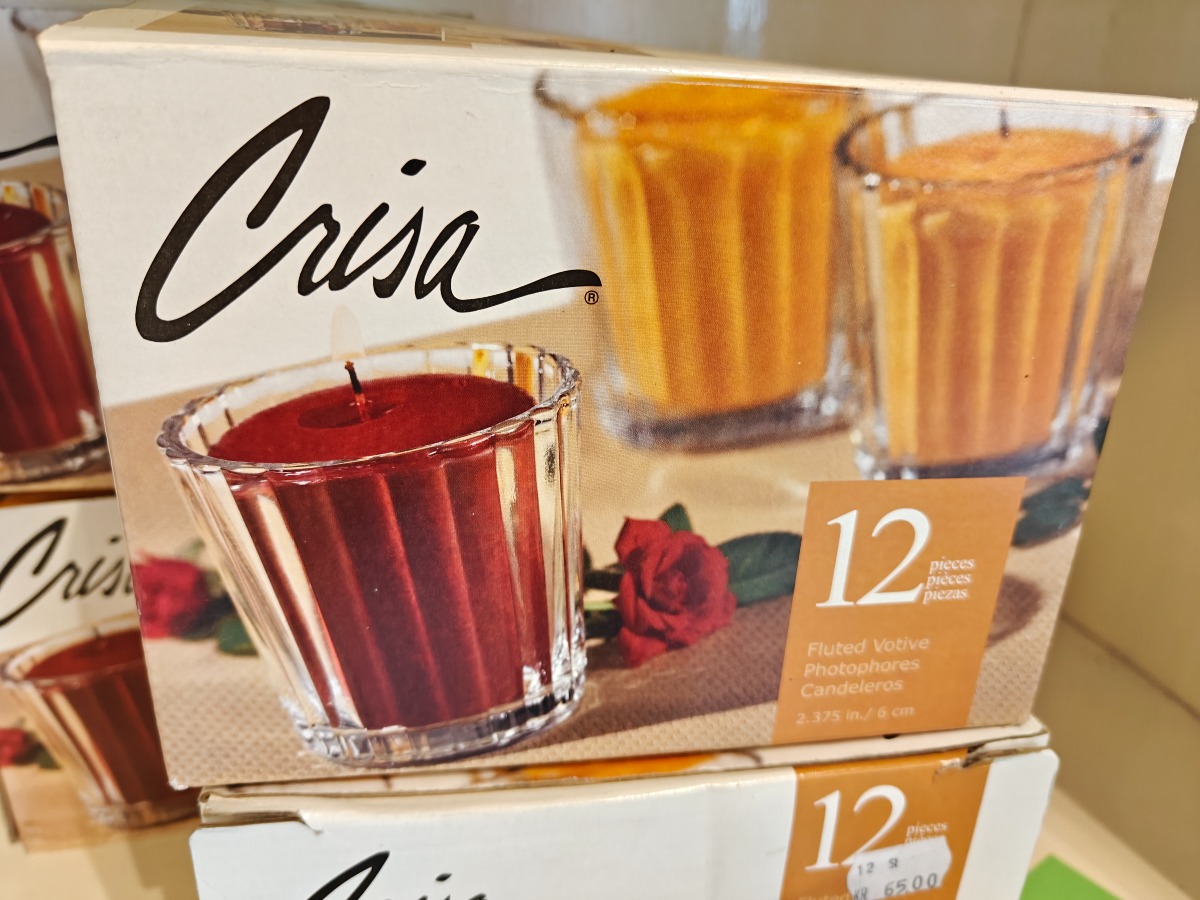 48 lysglas. Varen stammer fra en nedlagt brugskunst-butik. Eventuelle brugsspor kan forekomme.