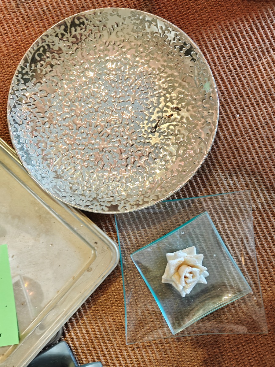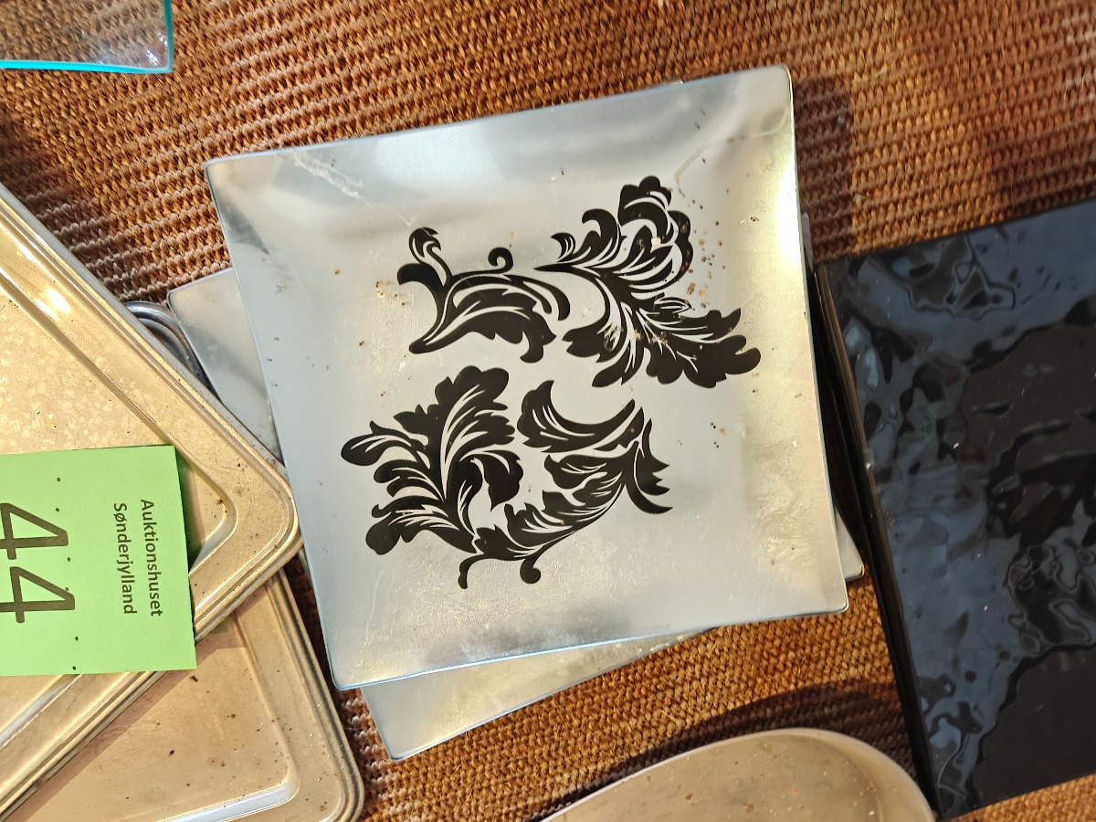 Forskellige fade. Glas og metal.  Varen stammer fra en nedlagt brugskunst-butik. Eventuelle brugsspor kan forekomme.