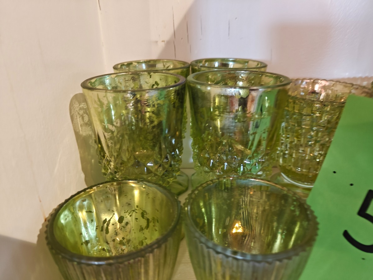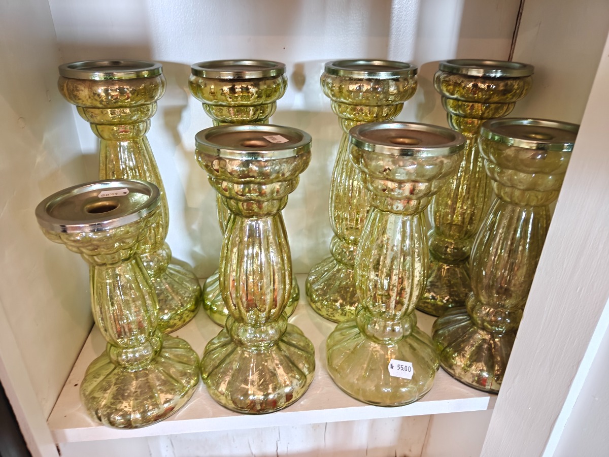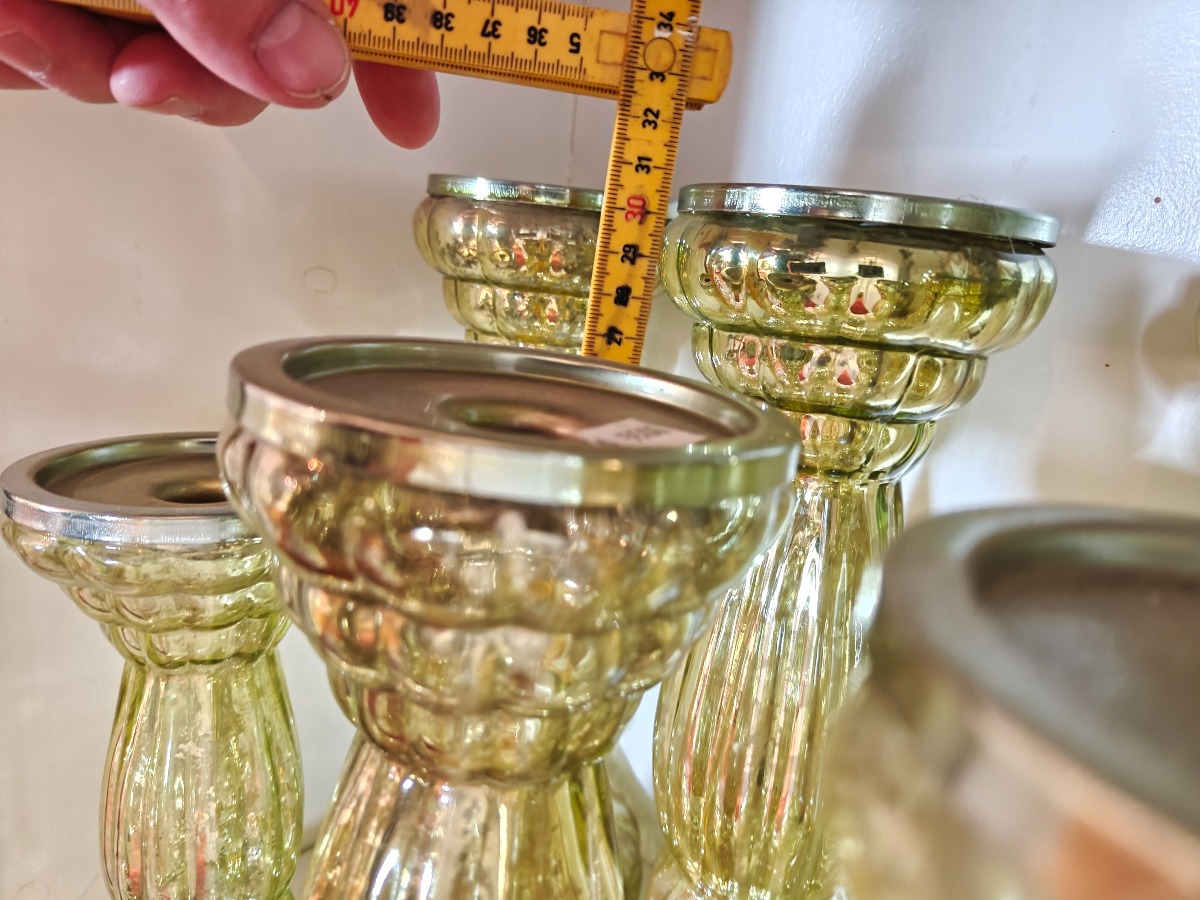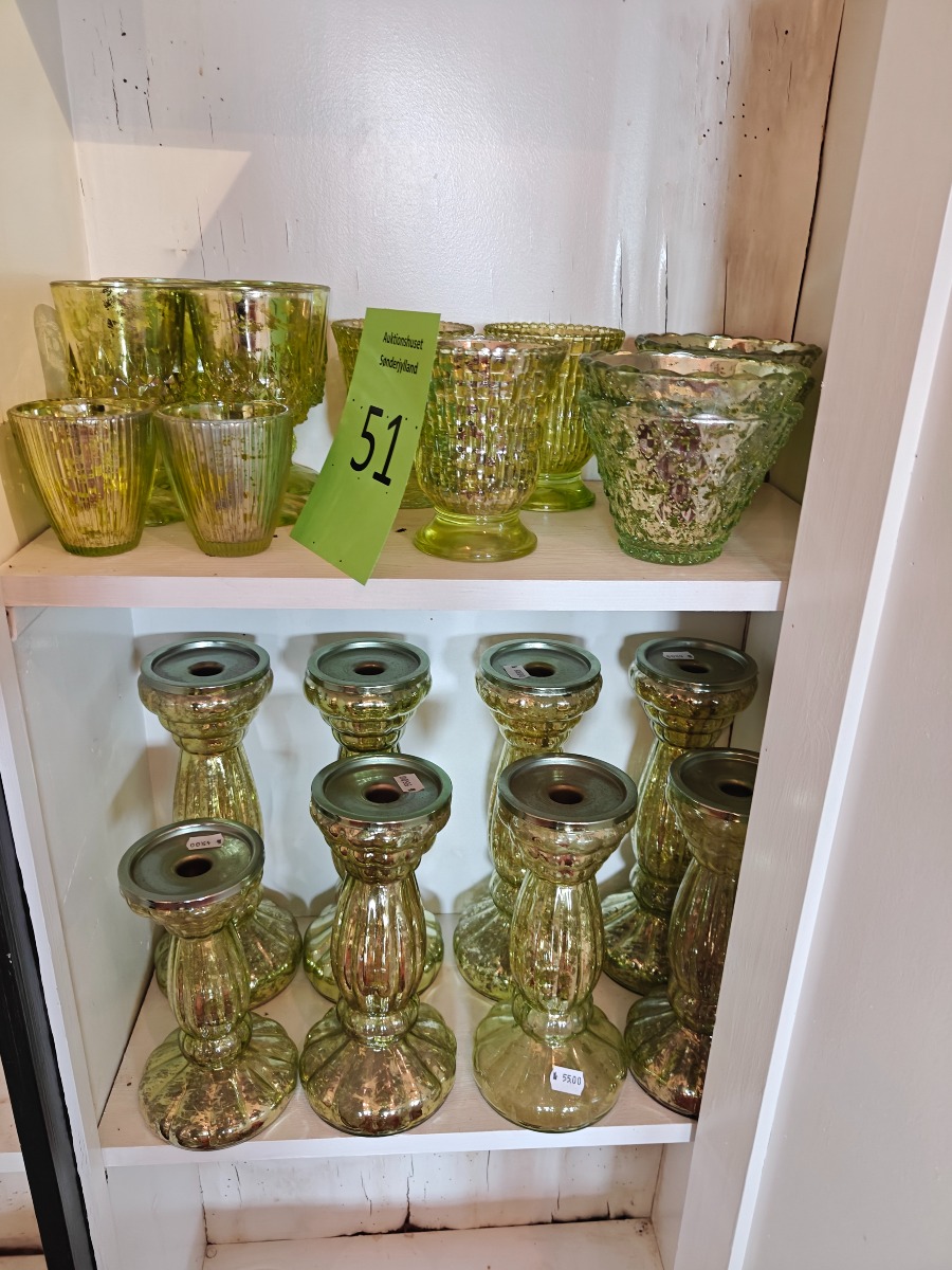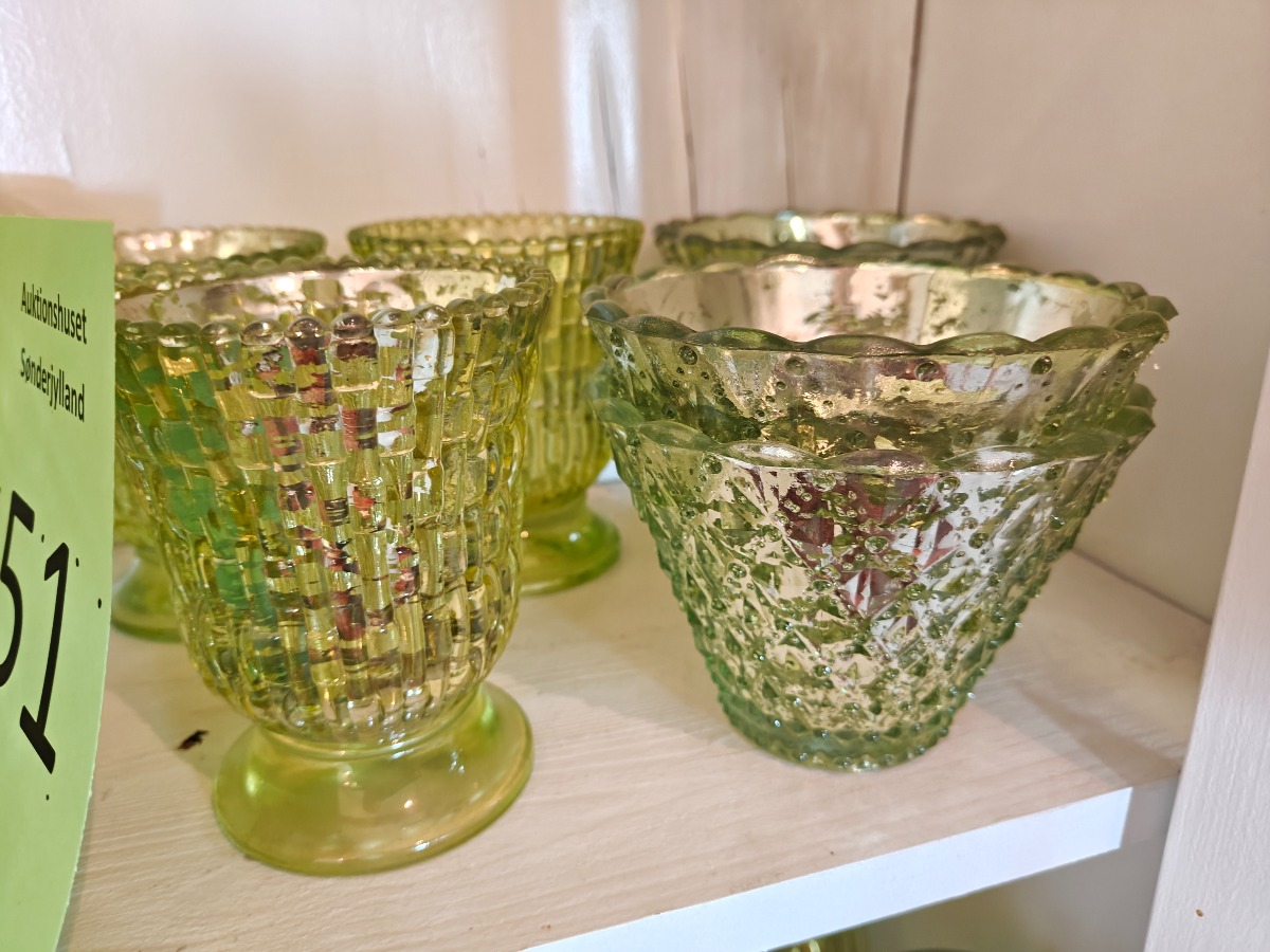 Nyere fattigmandssølv med grønt glas. Varen stammer fra en nedlagt brugskunst-butik. Eventuelle brugsspor kan forekomme.