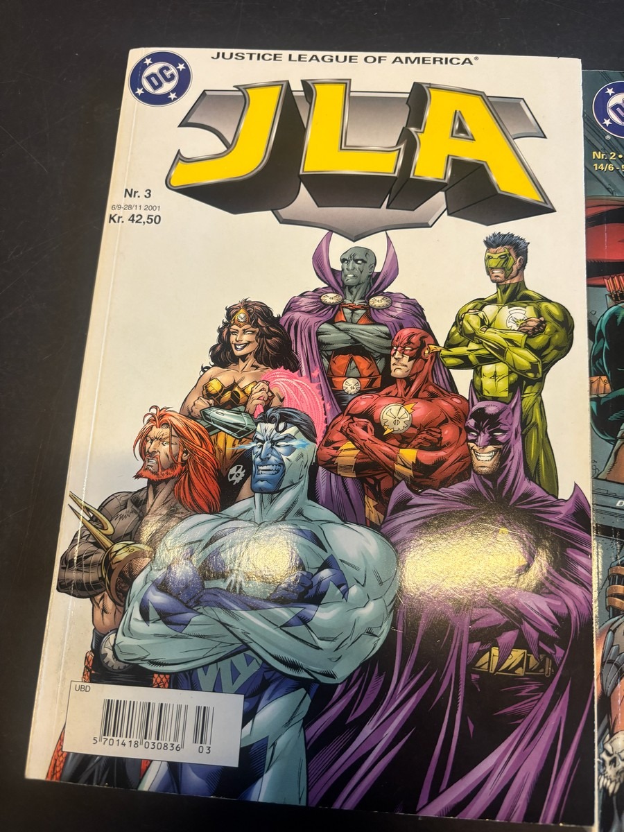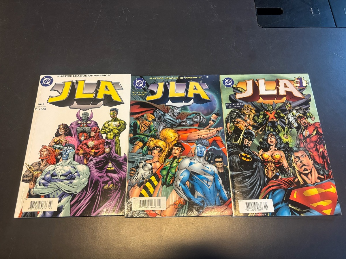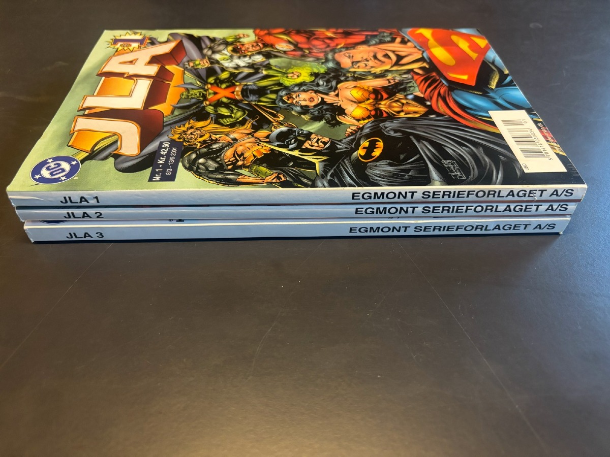 DC JLA (Justice League Of America), bind 1-3. Fremstår i pæn stand og fra samler