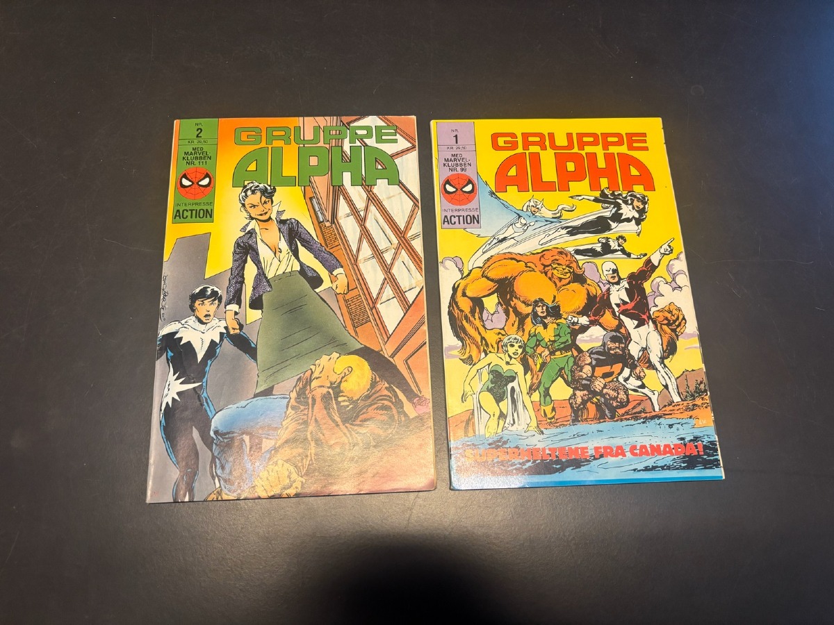 Marvel Gruppe Alpha, bind 1 & 2. Fremstår i pæn stand og fra samler