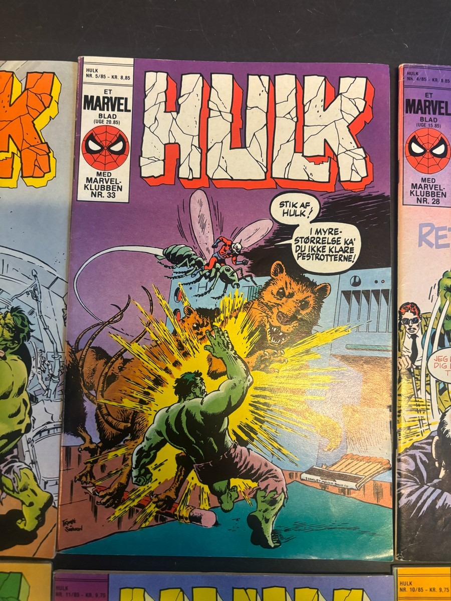 Marvel Hulk tegneserie, bind 1-12. Fremstår i pæn stand og fra samler