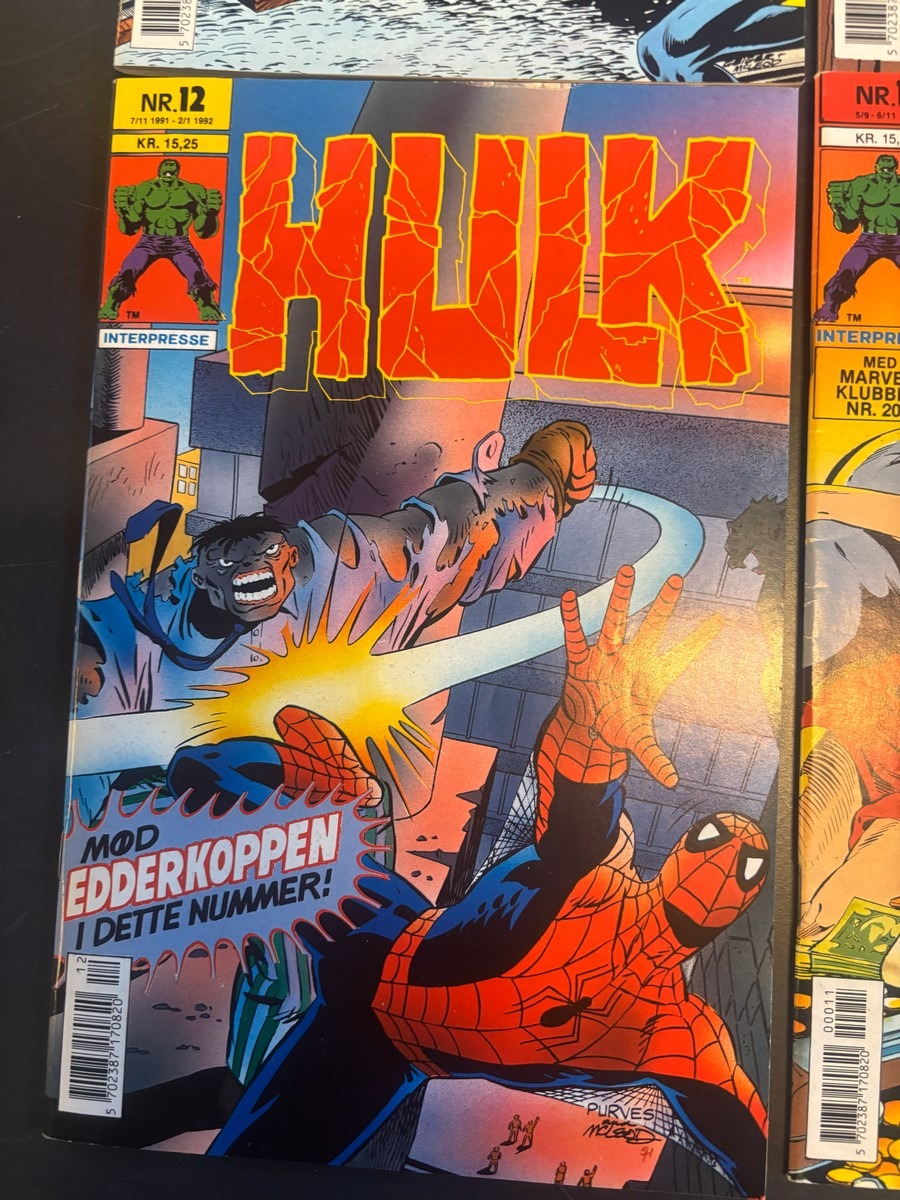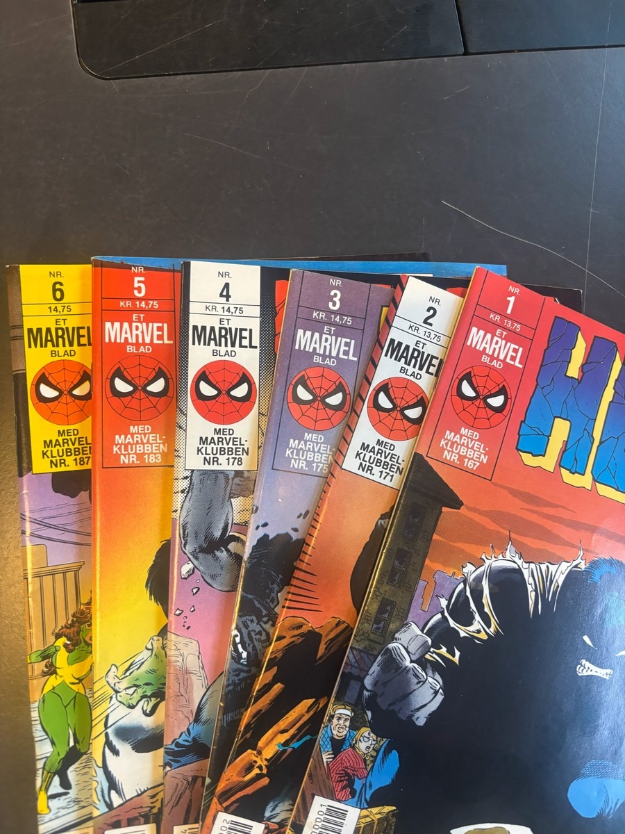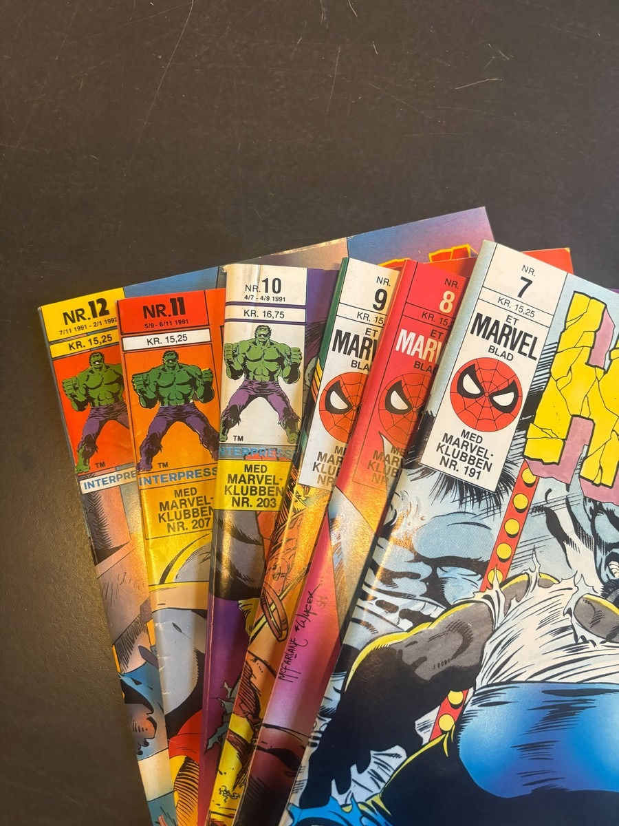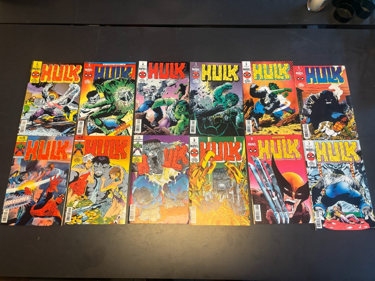 Marvel Hulk tegneserie, bind 1-12. Fremstår i pæn stand og fra samler