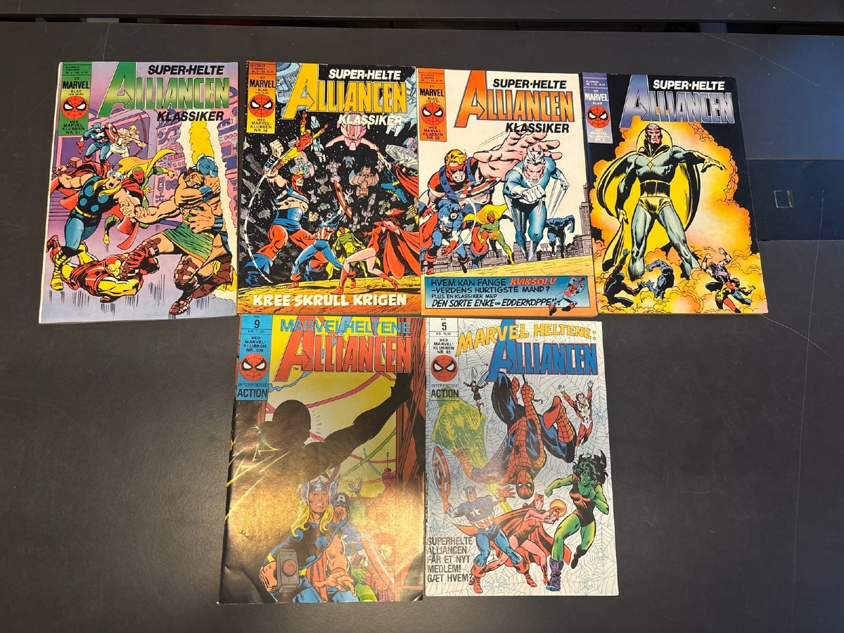 Marvel Superhelte alliancen, bind 1 - 5, samt 9. Fremstår i pæn stand og fra samler