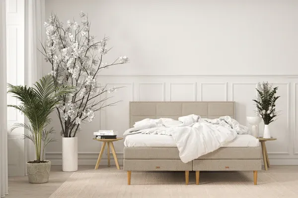 140x200 kontinentalseng. Boxmadras: 12x3 cm massiv træramme, 4 cm RG-skum og quiltet top med 100 g fiberfyld (18 cm høj). Springmadras: 13 cm ommefjedre (1,8 mm), 5 cm T-2535 komfortskum, 7 komfortzoner (21 cm høj) for ergonomisk støtte,. 280 lommefjedre pr. m² for rolig og stabil liggekomfort. Dansk design med et minimalistisk udtryk. Nem montering – kræver ikke værktøj. Fasthed: Højre og venstre side: medium, anbefalet op til 95 kg. Topmadras: Deluxe af latex. Latex former sig efter kroppens konturer og giver blød støtte, som sikrer god komfort og lang holdbarhed.Den naturlige åndbarhed i latex hjælper med at regulere temperaturen og holder dig køligere og tørrere om natten. Gavl: SÖVNN Soho Sengegavl - Sand - 140x107.