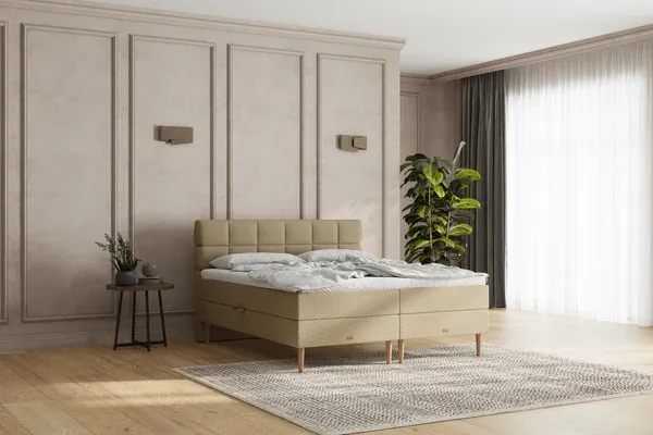 SÖVNN Zara Boxseng Med Opbevaring - 160x200 - Sand. Med Topmadras og Gavl (4894)