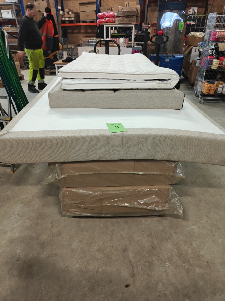 SÖVNN Kontinentalseng – 160 x 200. med gavl & topmadras. Der må forventes små skrammer og at de kan være beskidte og skal rengøres. Stået på ekstern lager i et stykke tid. Vi anbefaler at komme til eftersyn. Salg for virksomhed.