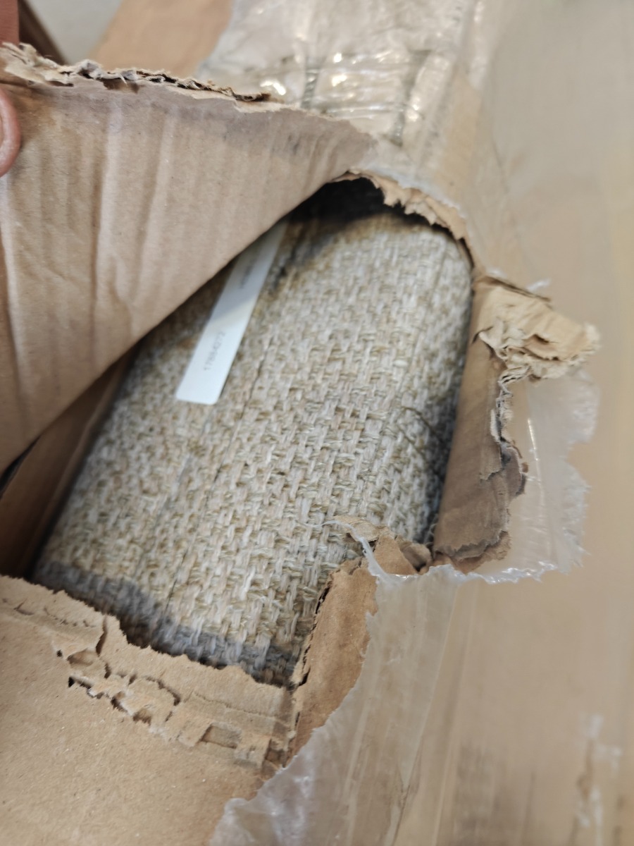 SÖVNN sengegavl 180 x 110  i  lys brun stof står i indpakning. Stået på ekstern lager i et stykke tid. Vi anbefaler at komme til eftersyn. Salg for virksomhed.