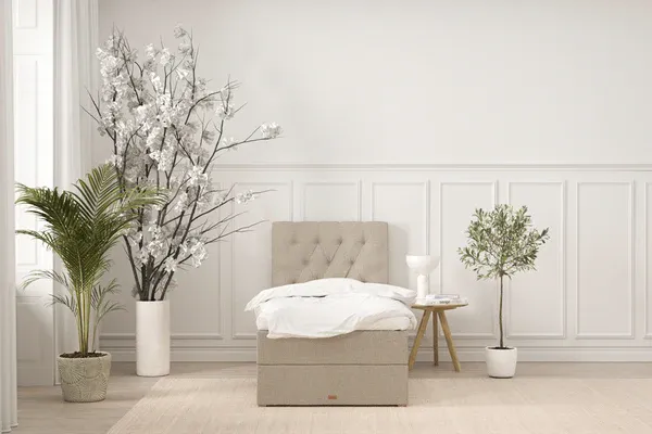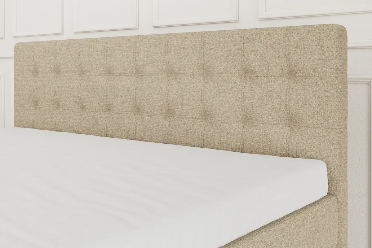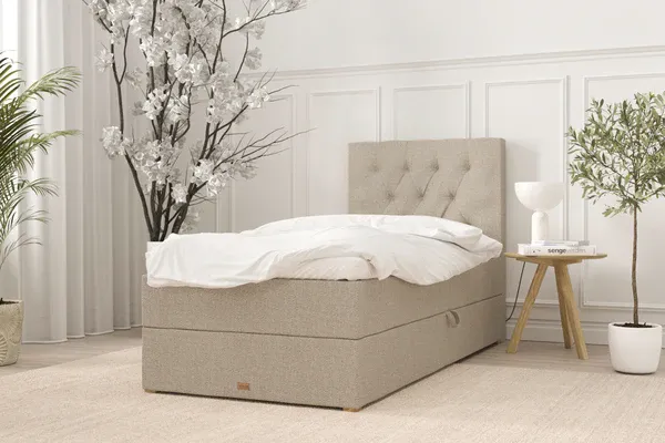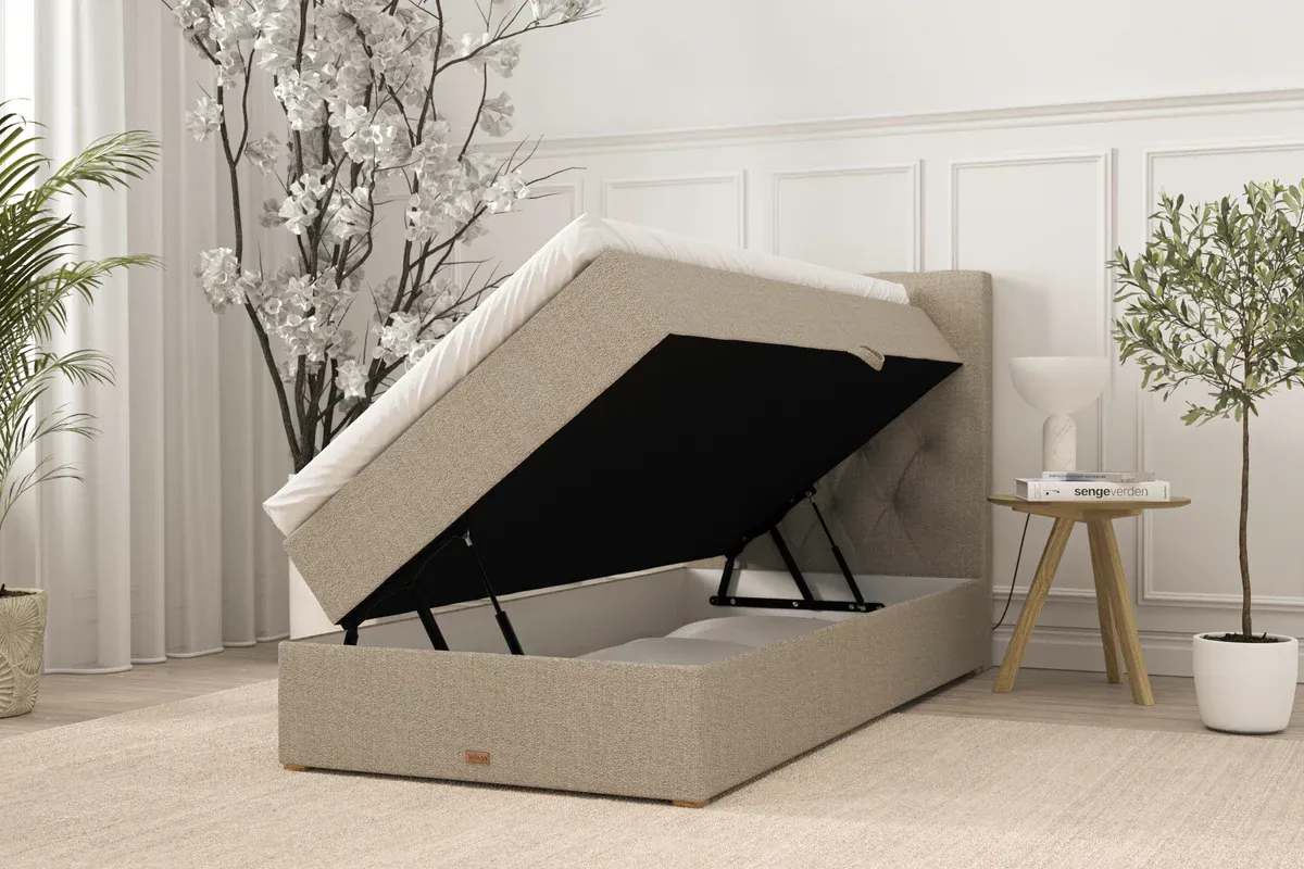 SÖVNN Freya Boxseng Med Opbevaring - 90x200 - Sand. Med Gavl og Topmadras (5235)