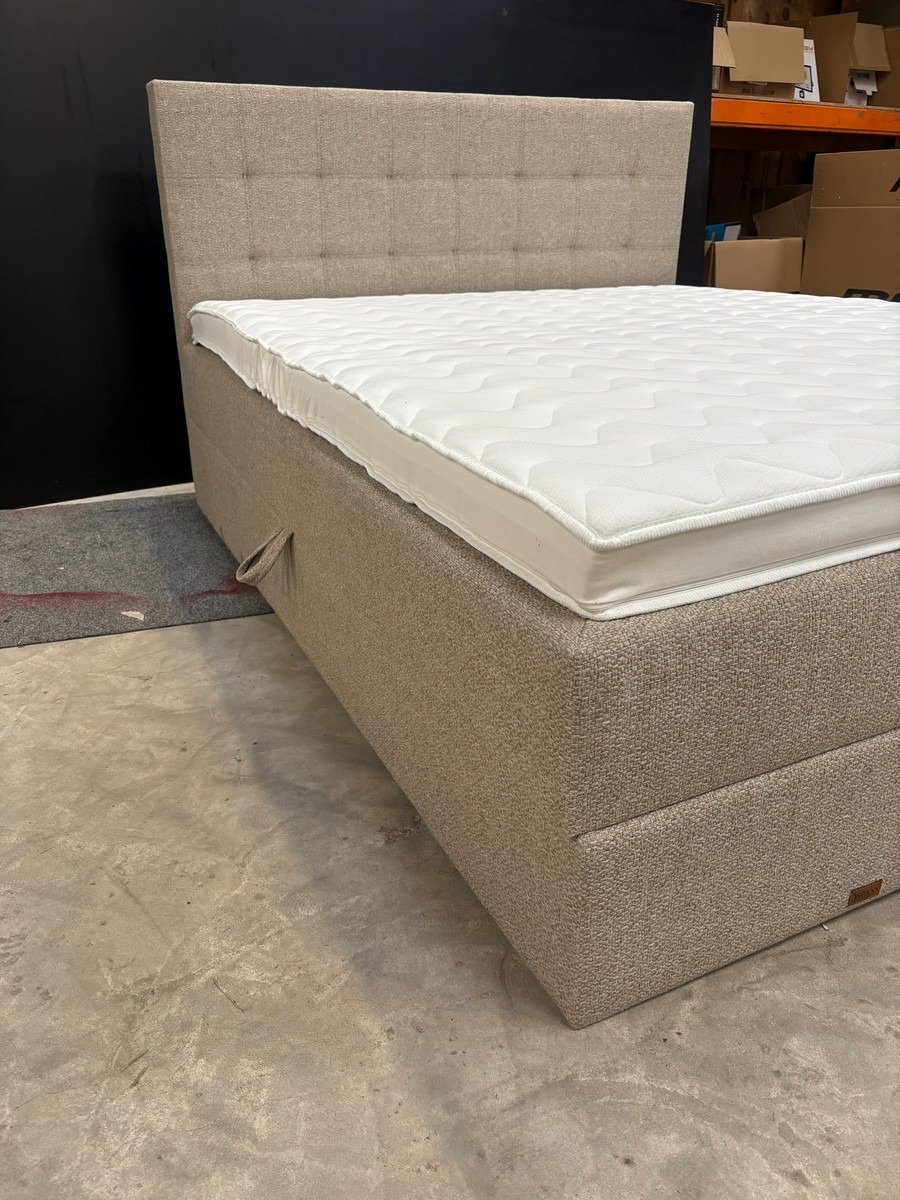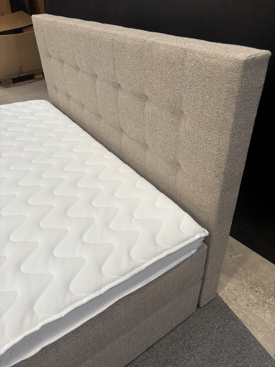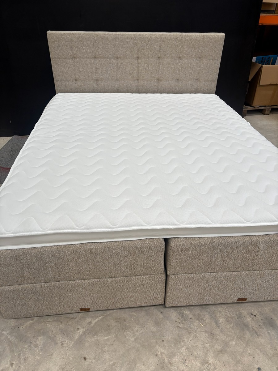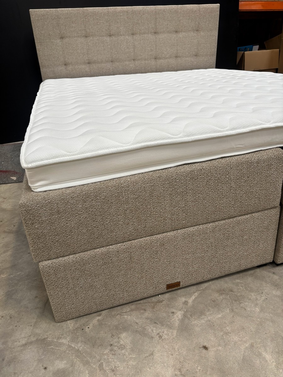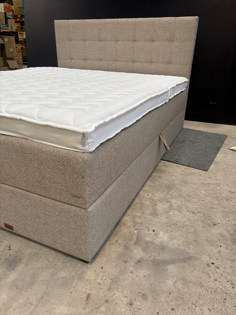 SÖVNN Kontinentalseng – 160 x 200. Med gavl & topmadras. Udgået model og været brugt som udstillings model. Der må forventes små skrammer og at de kan være beskidte og skal rengøres. Stået på ekstern lager i et stykke tid. Vi anbefaler at komme til eftersyn. Salg for virksomhed.