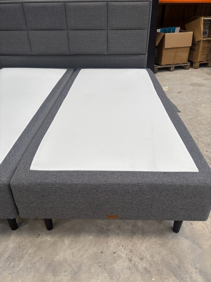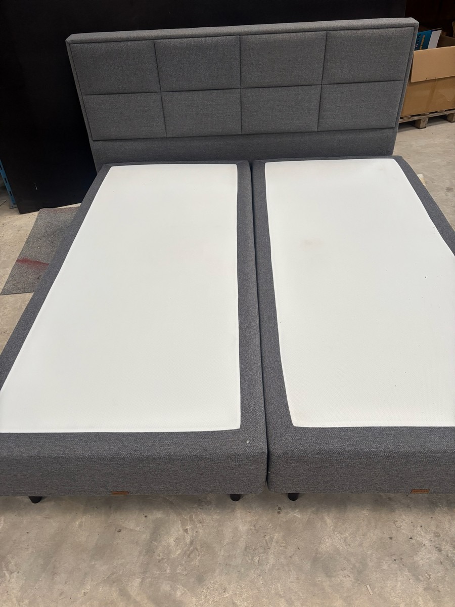 SÖVNN Kontinentalseng – 180 x 200. Med gavl & uden topmadras. Udgået model og været brugt som udstillings model. Der må forventes små skrammer og at de kan være beskidte og skal rengøres. Stået på ekstern lager i et stykke tid. Vi anbefaler at komme til eftersyn. Salg for virksomhed.