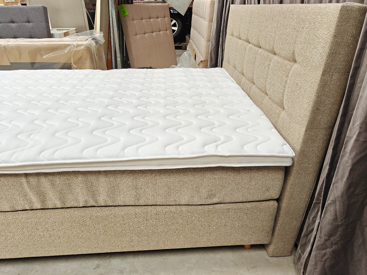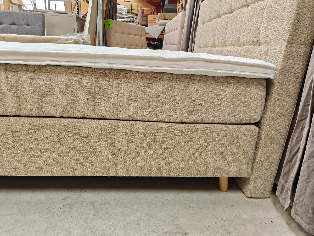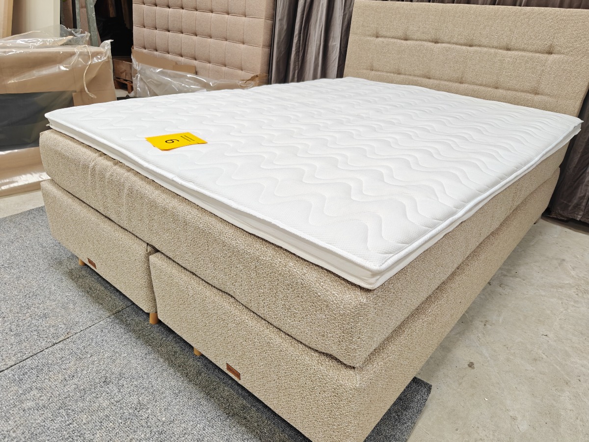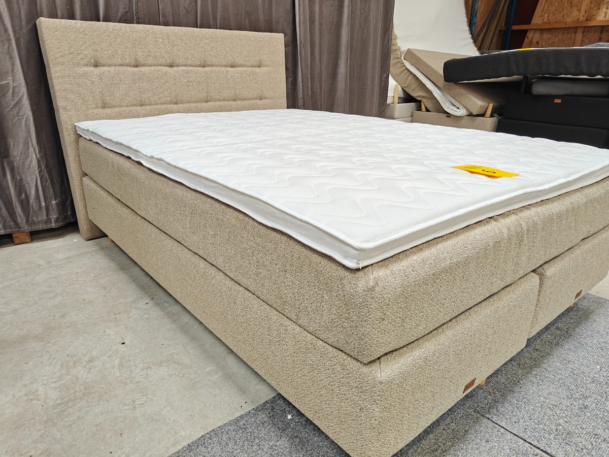 SÖVNN Kontinentalseng - 140x200 - Lys beige - Med gavl og topmadras. Udgået model og været brugt som udstillings model. Der må forventes små skrammer og at de kan være beskidte og skal rengøres. Stået på ekstern lager i et stykke tid. Vi anbefaler at komme til eftersyn. Salg for virksomhed.